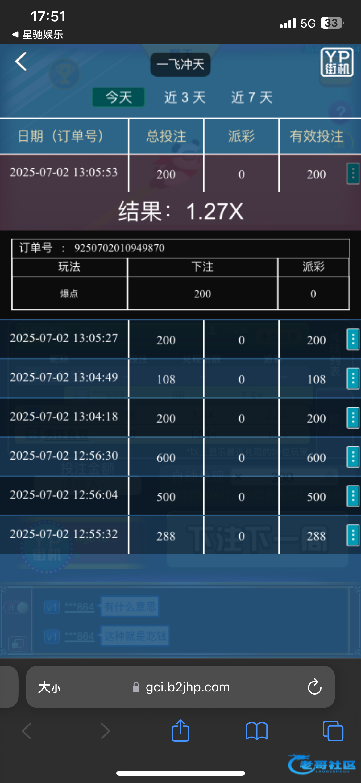 玩这个碰见好路不能怂才能赢,平时的路子见好就收不上头才行,昨天一个小时输三千多,三四百这样充,一直连白,充值的间隙就飞上去几把,怂了就高了不怂又屁黄