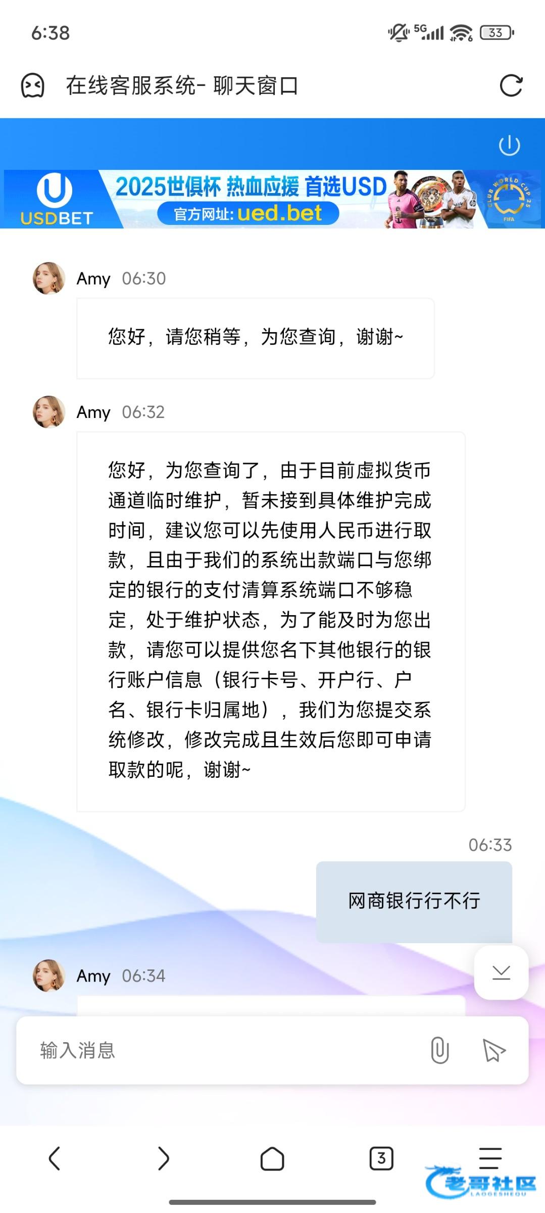 老哥们,USDBET只让提卡,说虚拟币通道维护,我想问下黑钱的几率大不大?