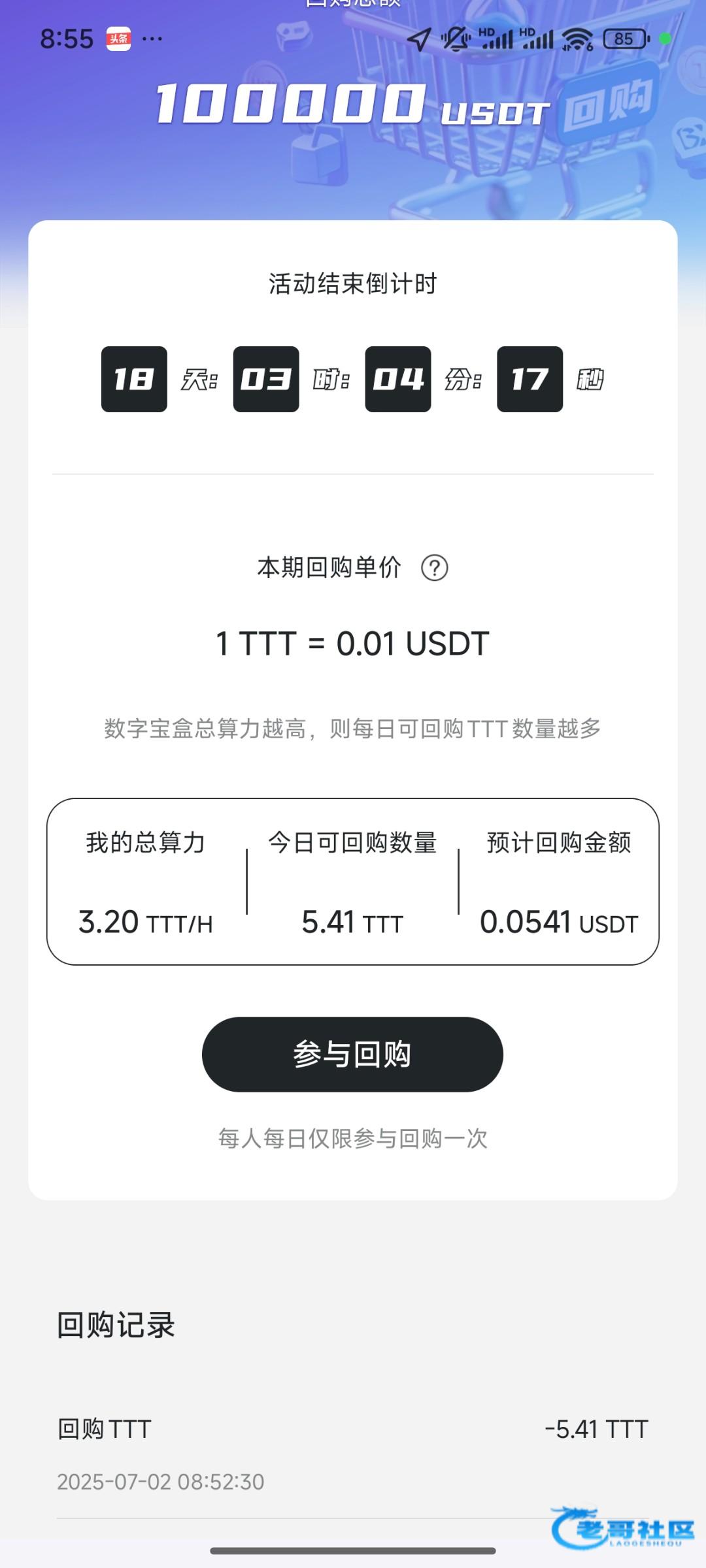 一天回购5.41,什么时候凑够10u,有点坑