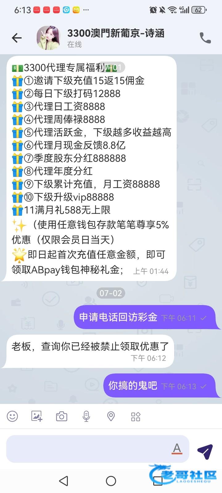 接到电话 加了线聊客服说我多ip不给我申请