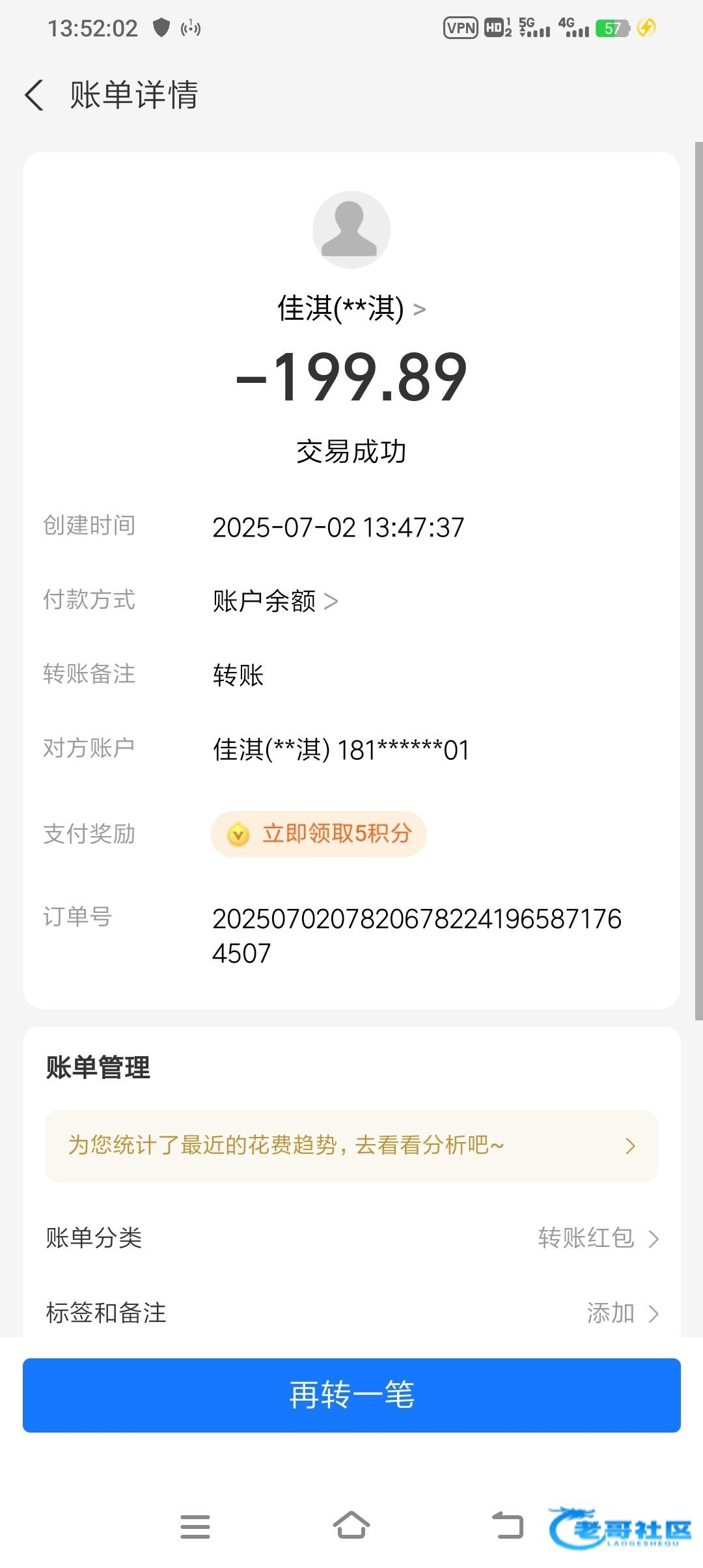 过了一个小时到账的?