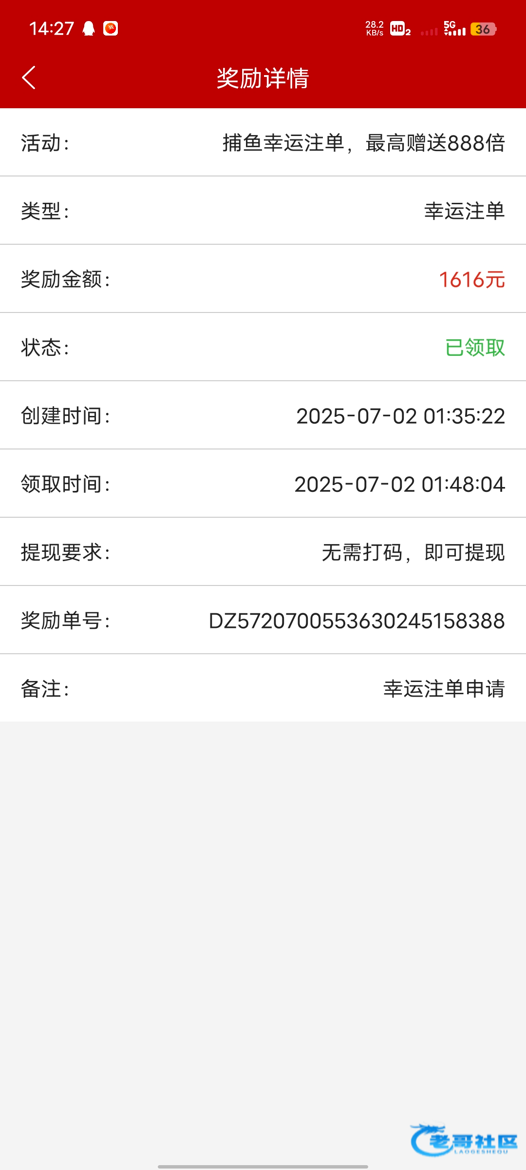 中奖的在30分钟内找老哥,