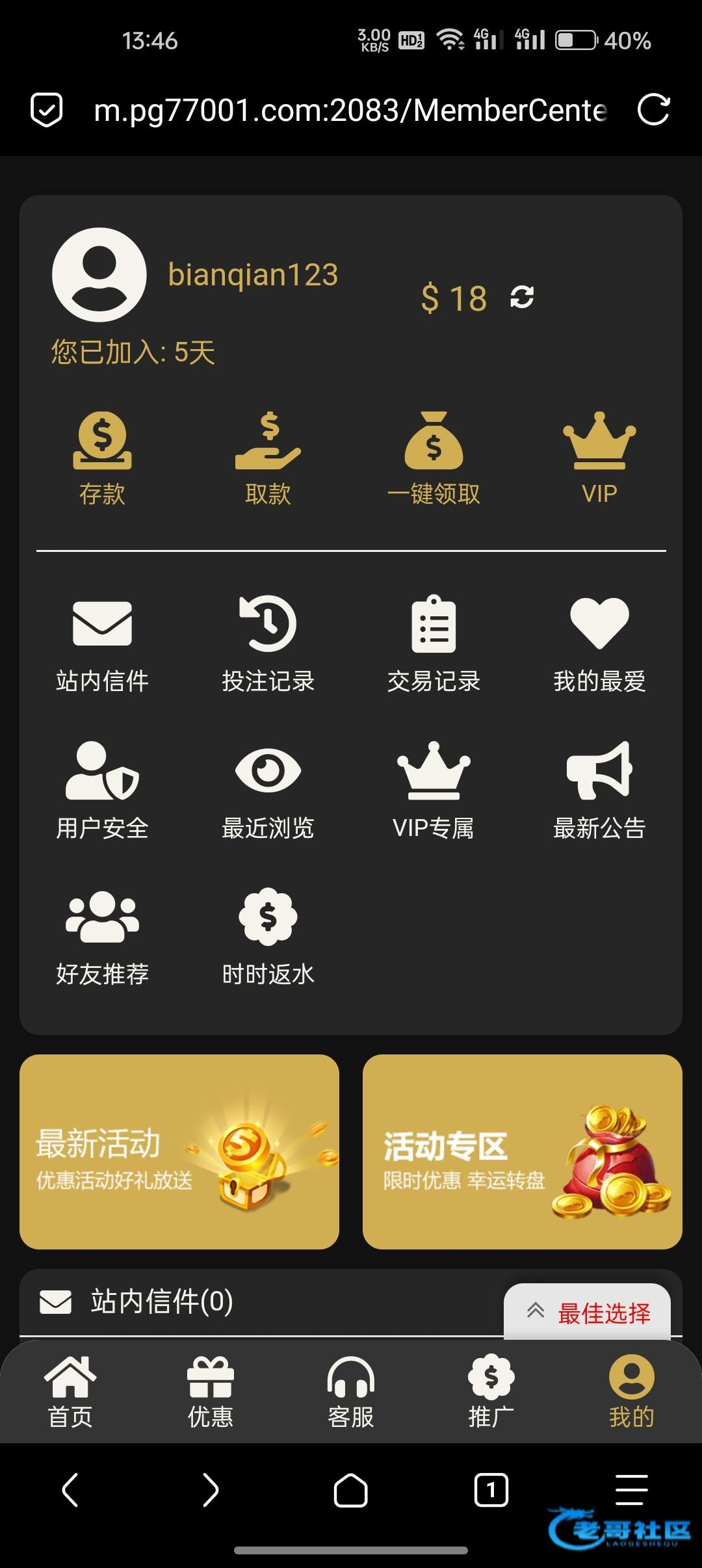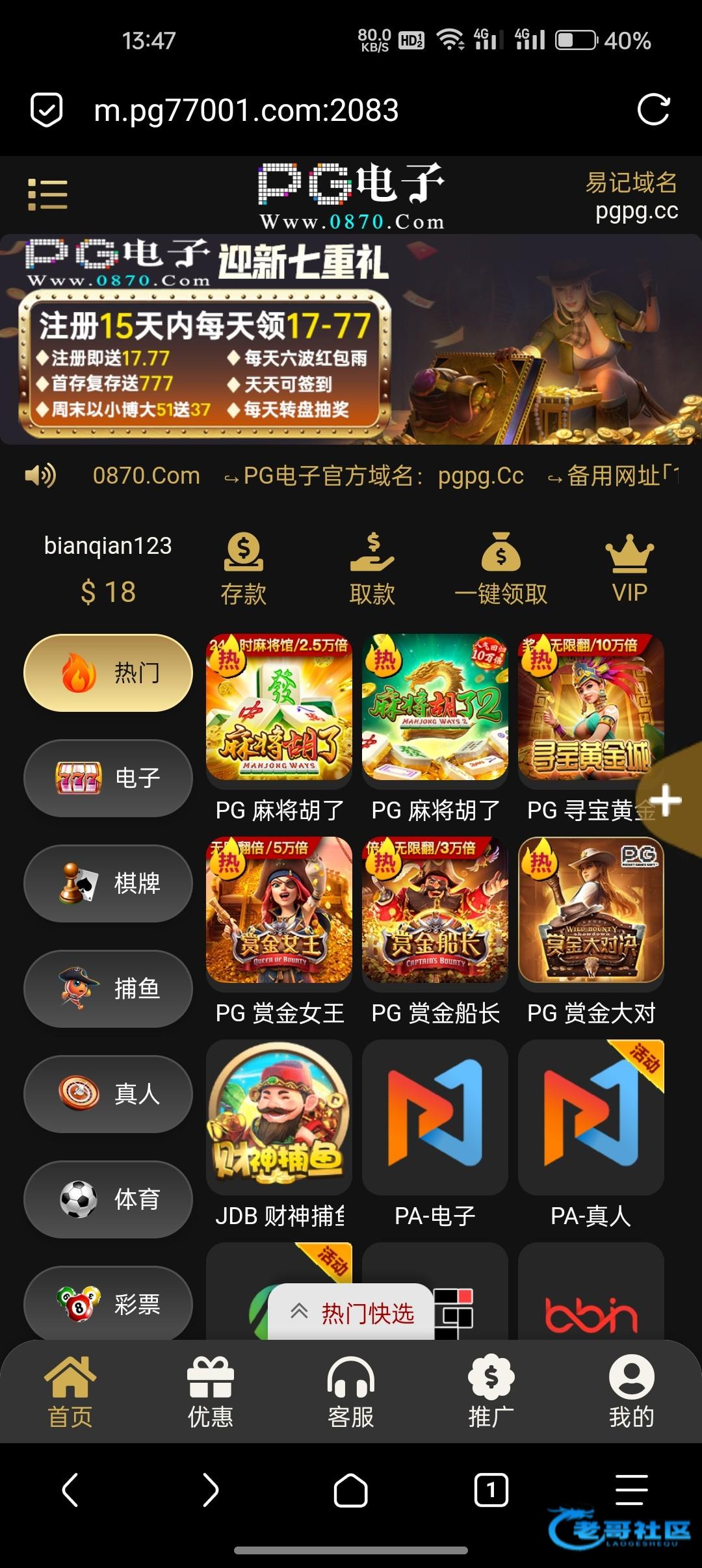 前两天注册了一下今天来电话送了18就说朋友推荐的,大家注册等电话 链接0870.com