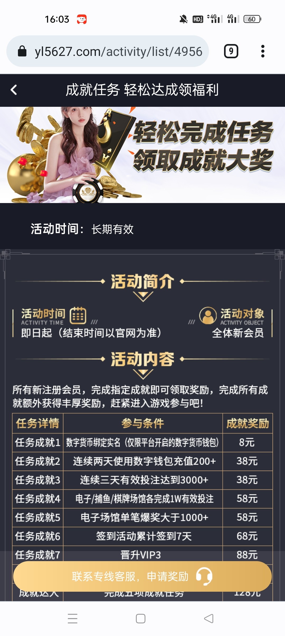 尊贵的会员您好,绑定虚拟货币钱包获得8元彩金,前提需要存款达到300元+才符合申请条件,麻烦请您完成存款后再联系我们在线客服申请哦,谢谢