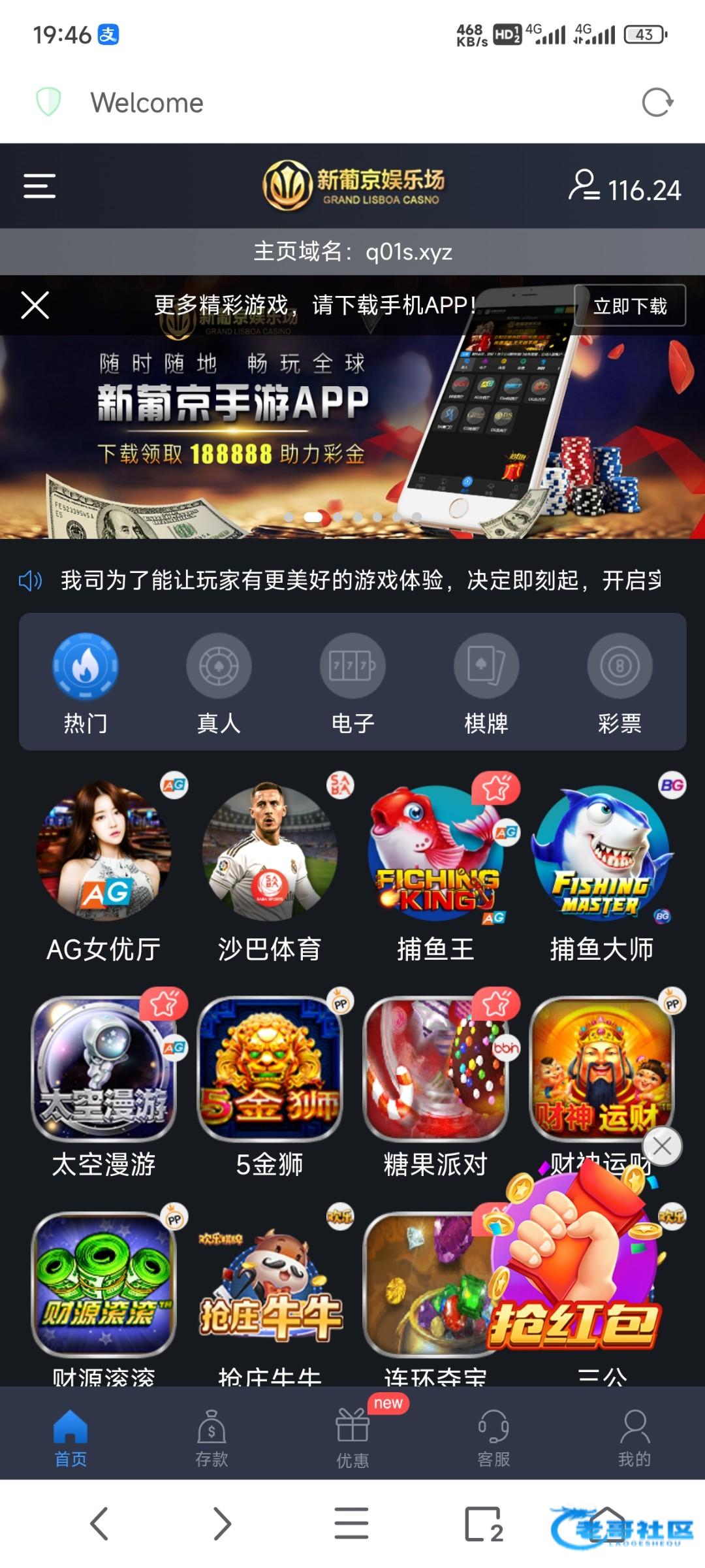 这个葡京娱乐场是个黑台子,大额出款被黑了,而且我朋友代理他家,他家代理部门各种乱扣佣金,不信你们去自己认真核实去看看玩家输一万能给你平均1500吗?各种扣,千万别代理,玩家就有担保的平台