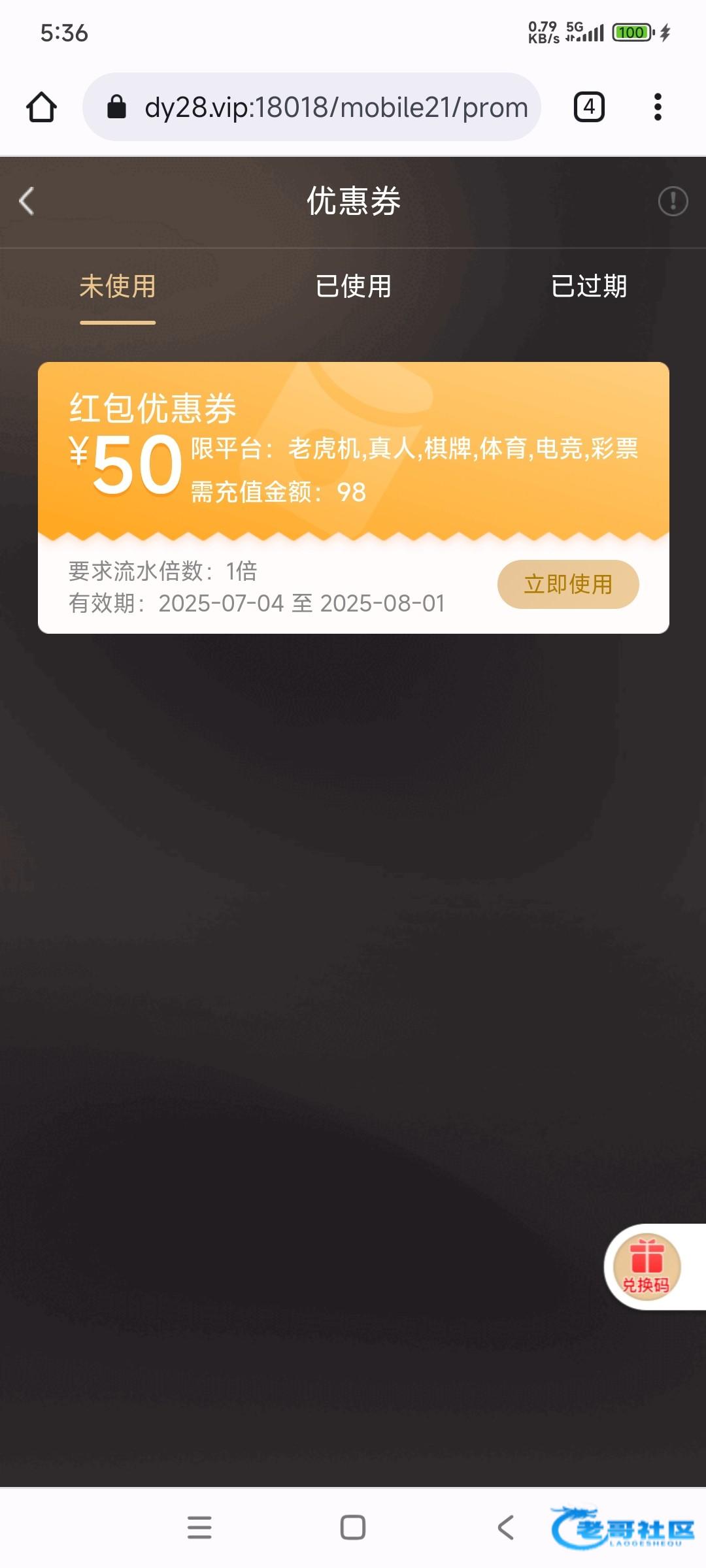 50得充值98的券