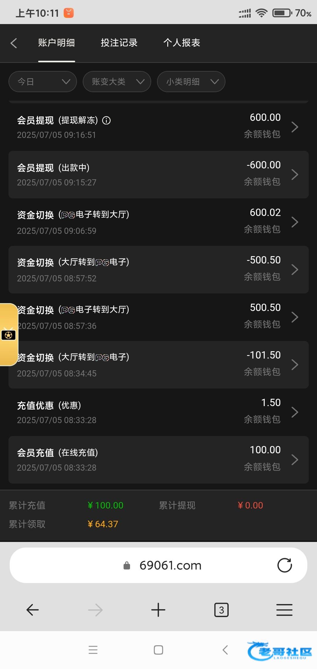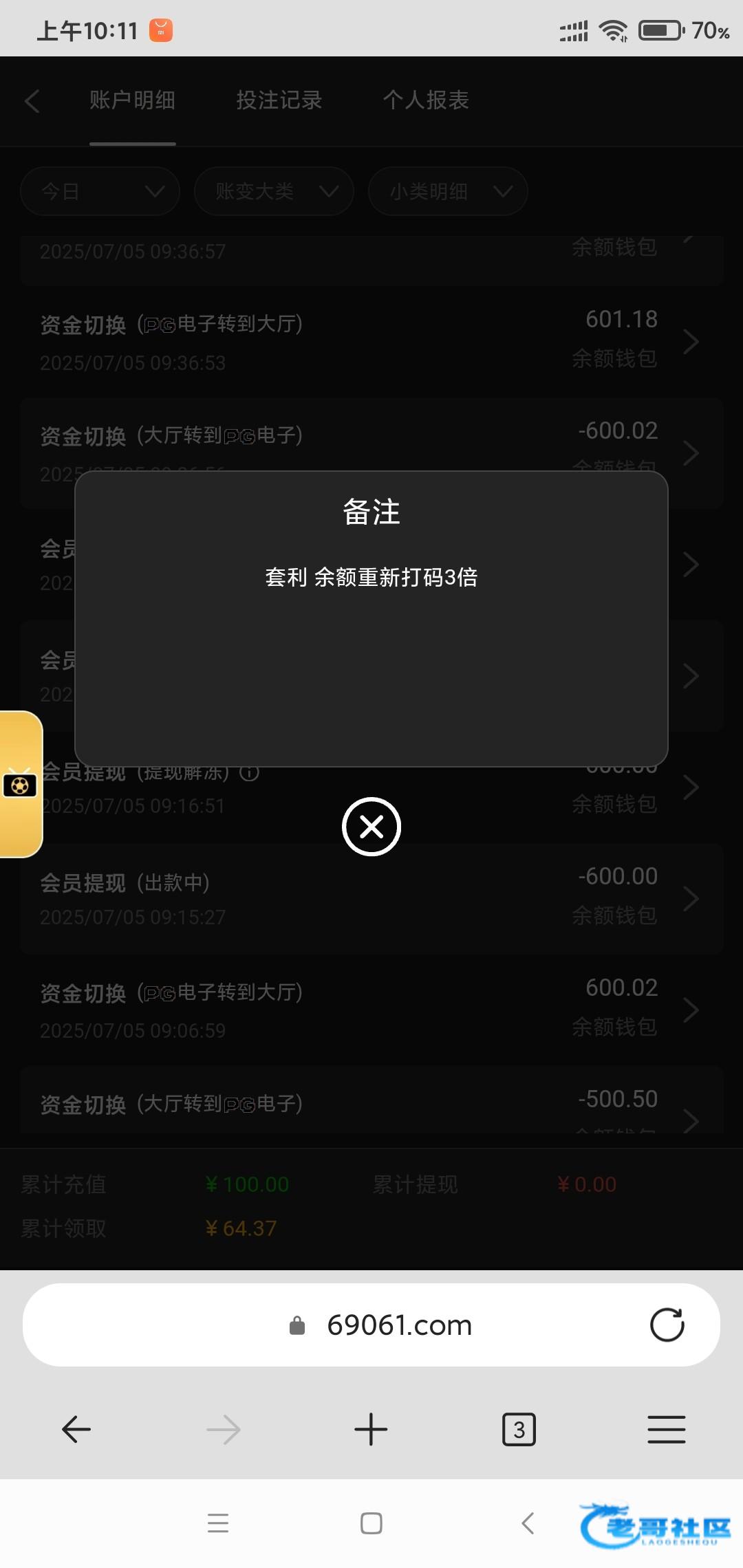 上了100什么优惠都没领直接说套利就一个账号64的返水
