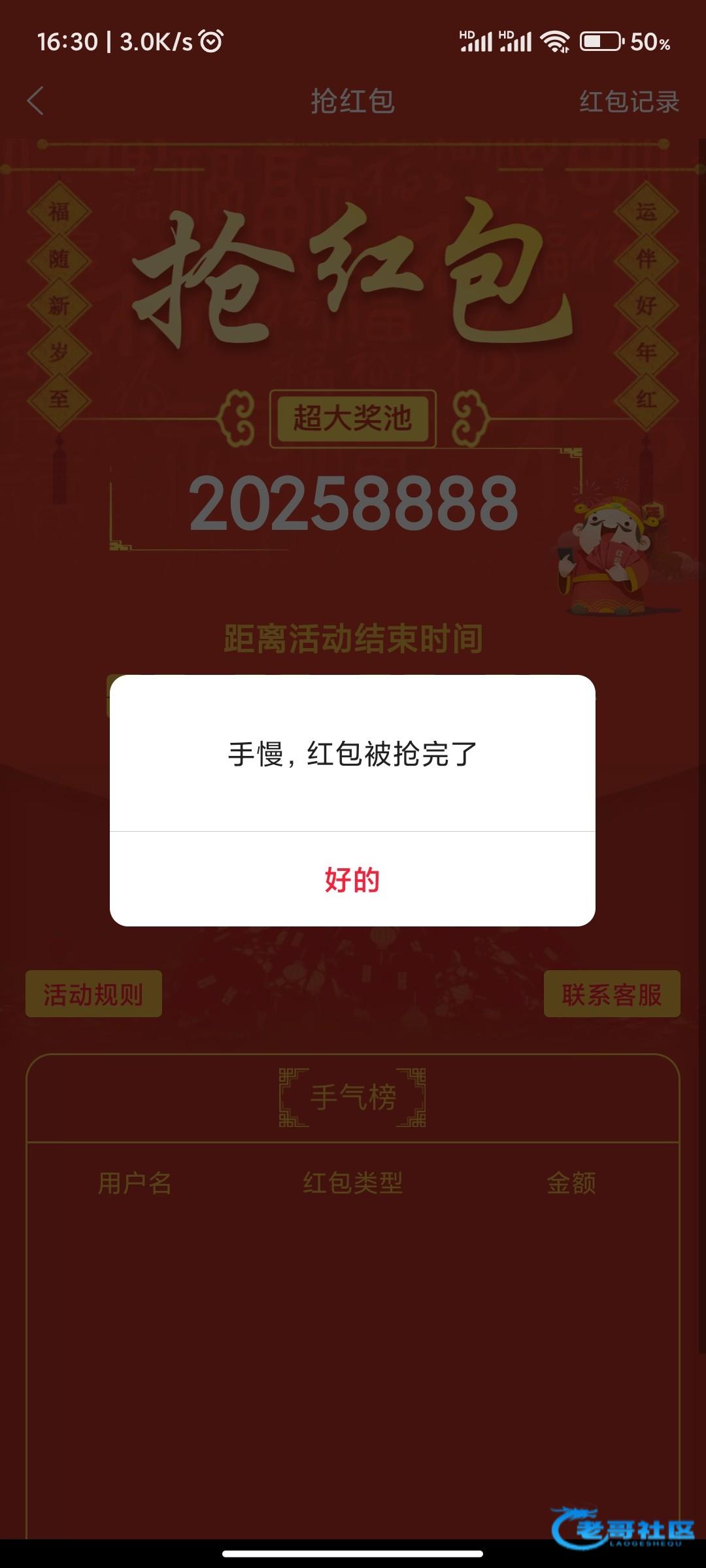 杂总精彩网系列新葡京280平台每次抢红包都抢不到而且就算抢到了只有一两块,v4的号,输了不知道多少进去了。你们是不是这种情况?4.30不到就在里面等着然后就是稍等再然后就是手慢红包抢完了!???秒没