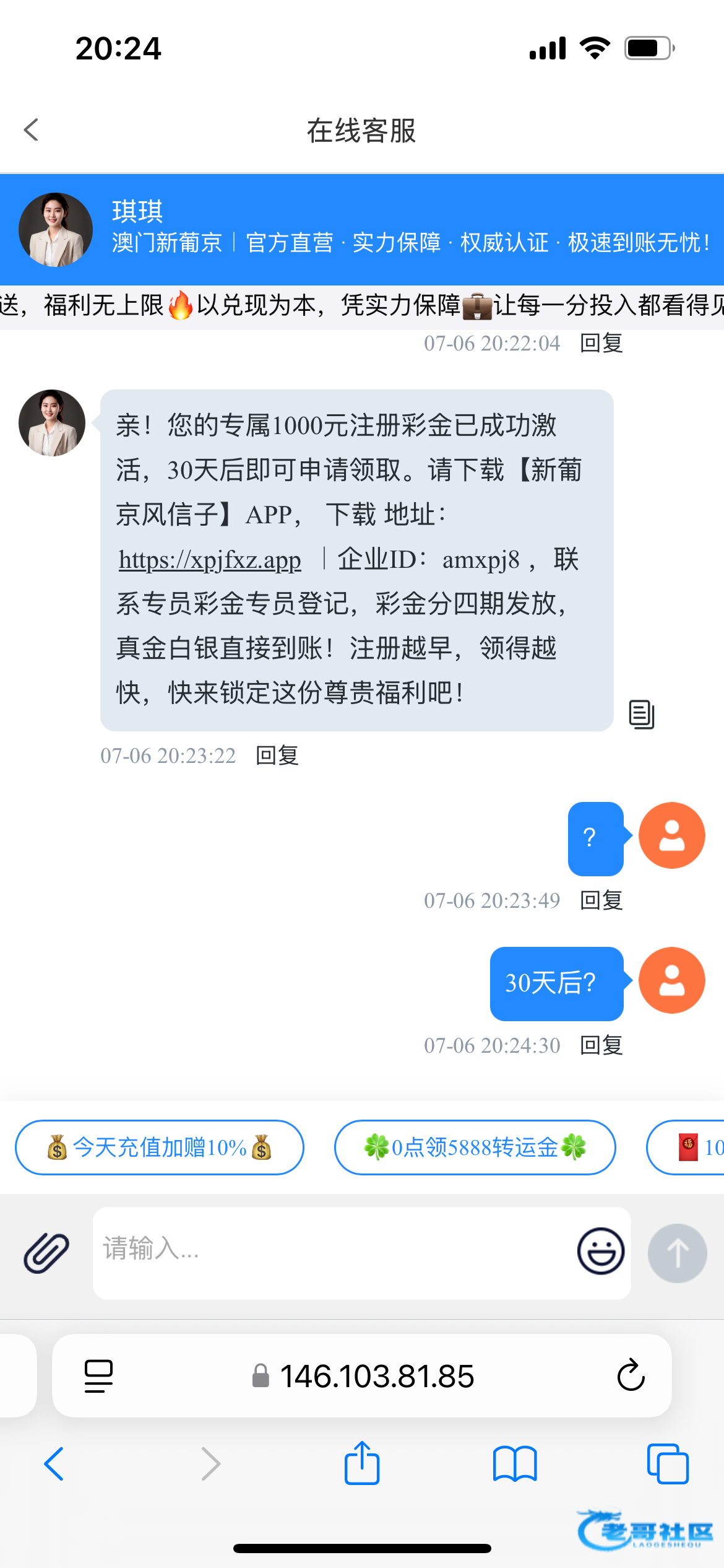 专属客服叫我30天后来找再送