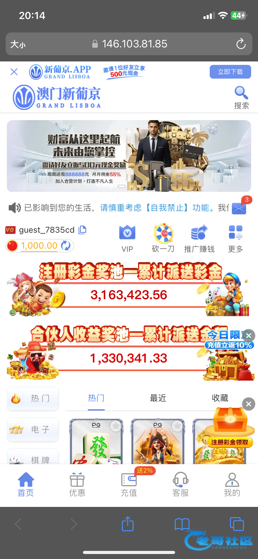 一看就是诈骗台,一搜索进去还没登录直接有1000了哈哈哈