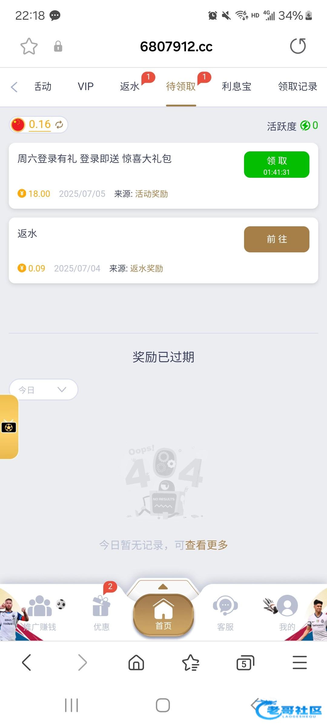 上号有18 显示是星期六登录彩金 但是我昨天绝对没登录,有号的上号看看,优惠里面自助领取。链接081.com