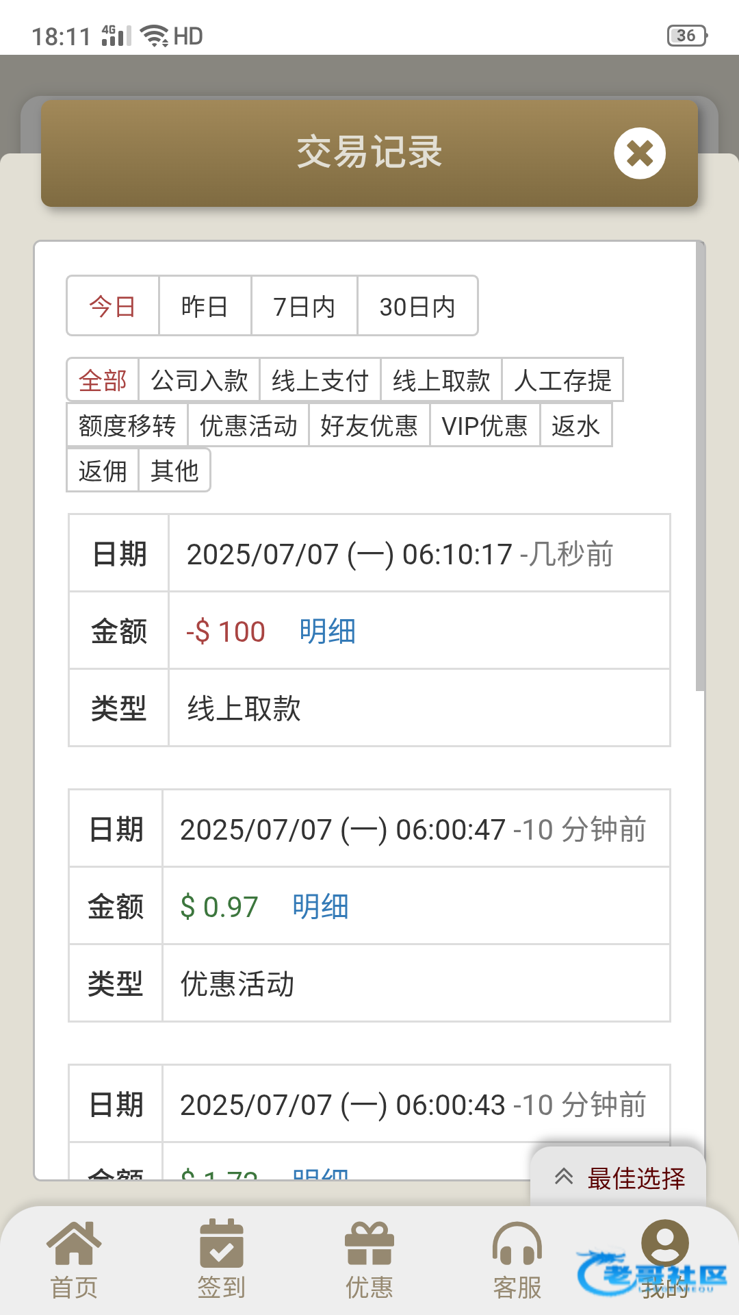 之前充过100申请88彩金,打真人出了600多