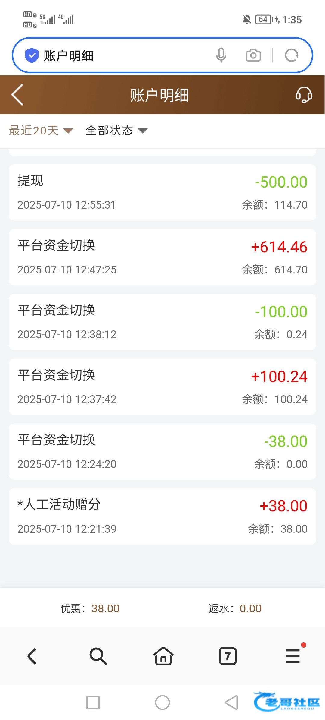 今天打电话也送了38,拉麻将一倍流水杀光,进了一次胡,2倍出来,哈哈哈