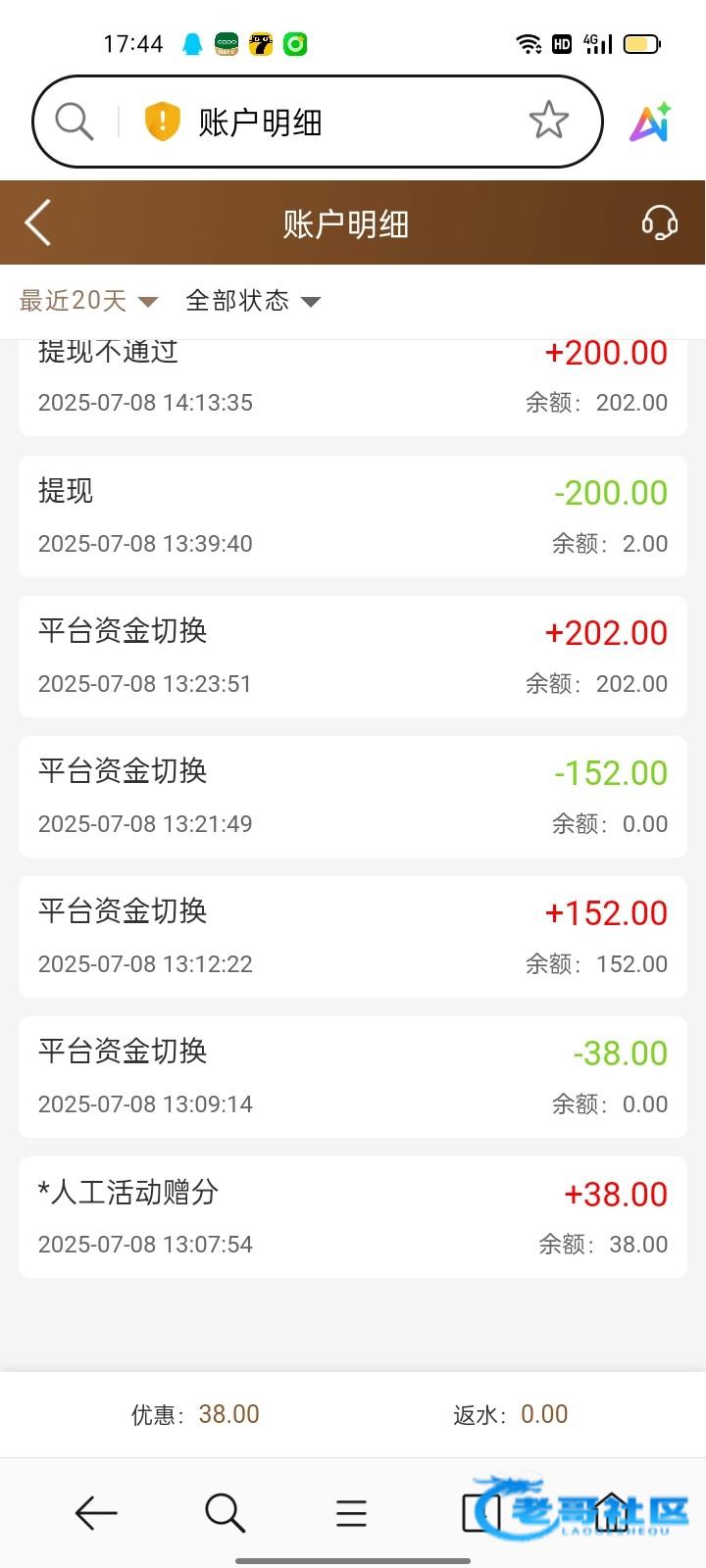 这个平台也是人才!彩金打到260充值了50然后继续打!打到600然后去提款!先是要手持身份证手持银行卡一些列的操作!然后提交提款后说我没有充值记录存在套利!还要充610一倍流水才能提款!妥妥的黑平台!这次被狗庄反撸50!