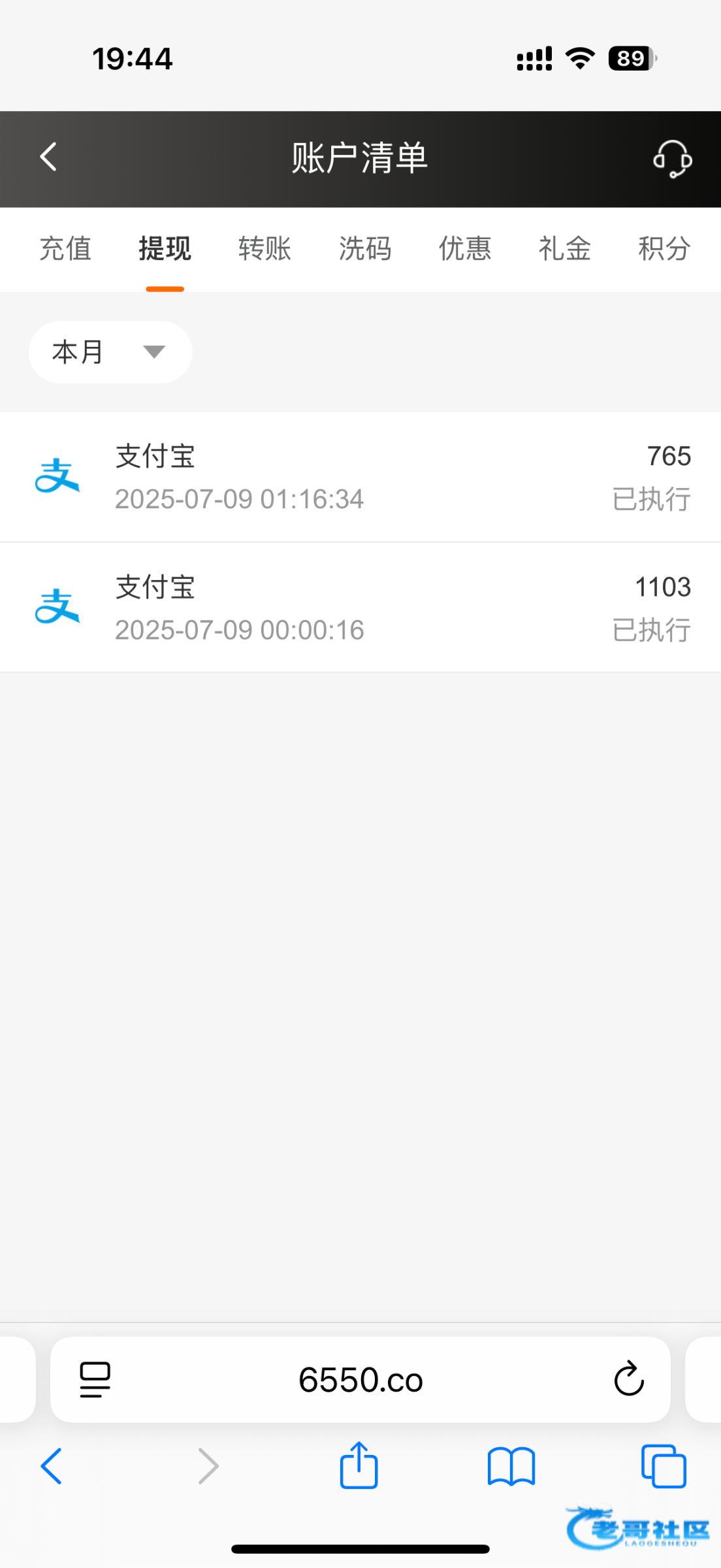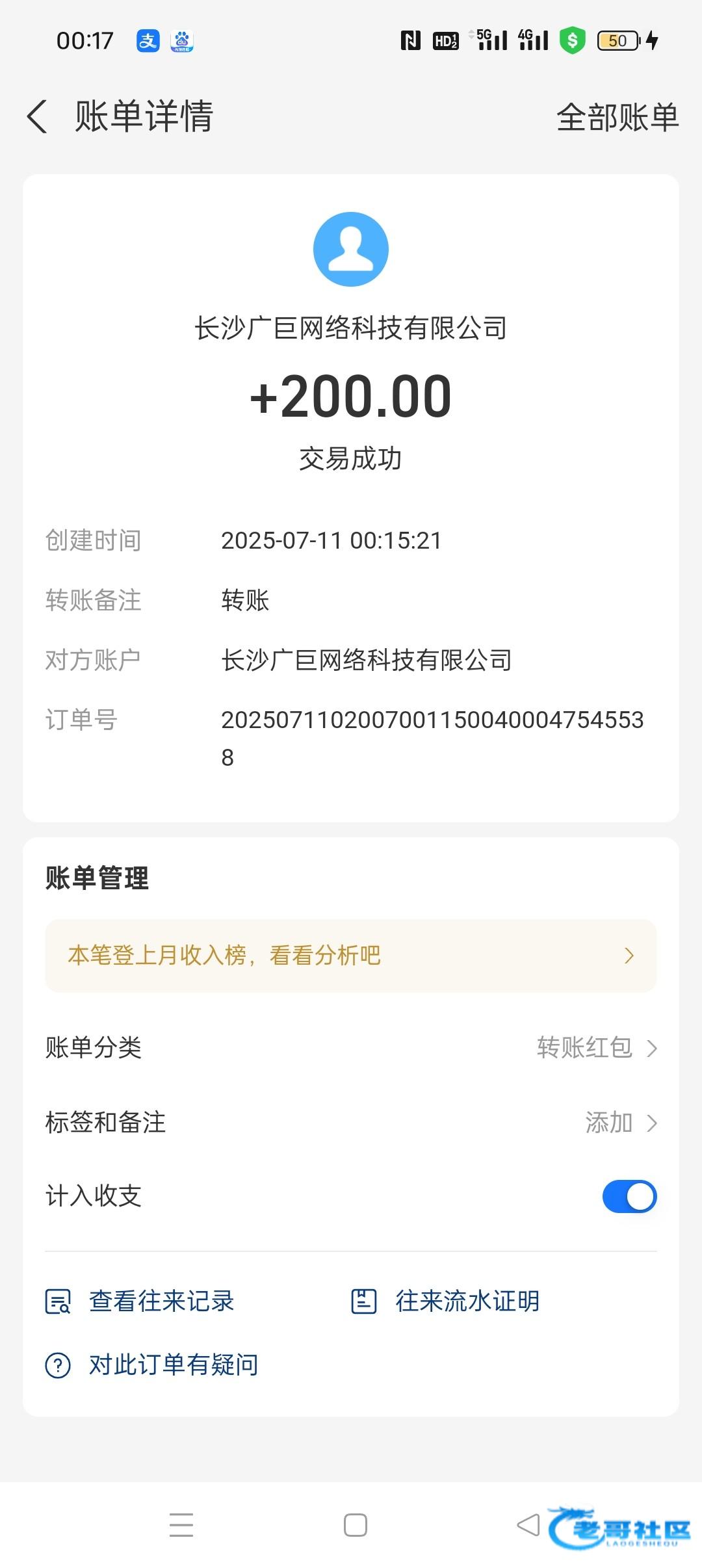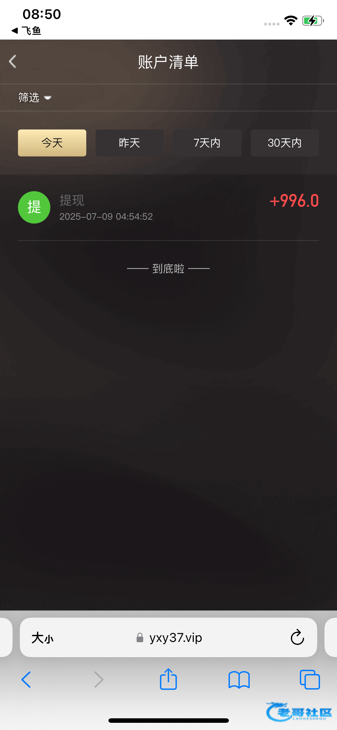 等了要一天了 终于到账