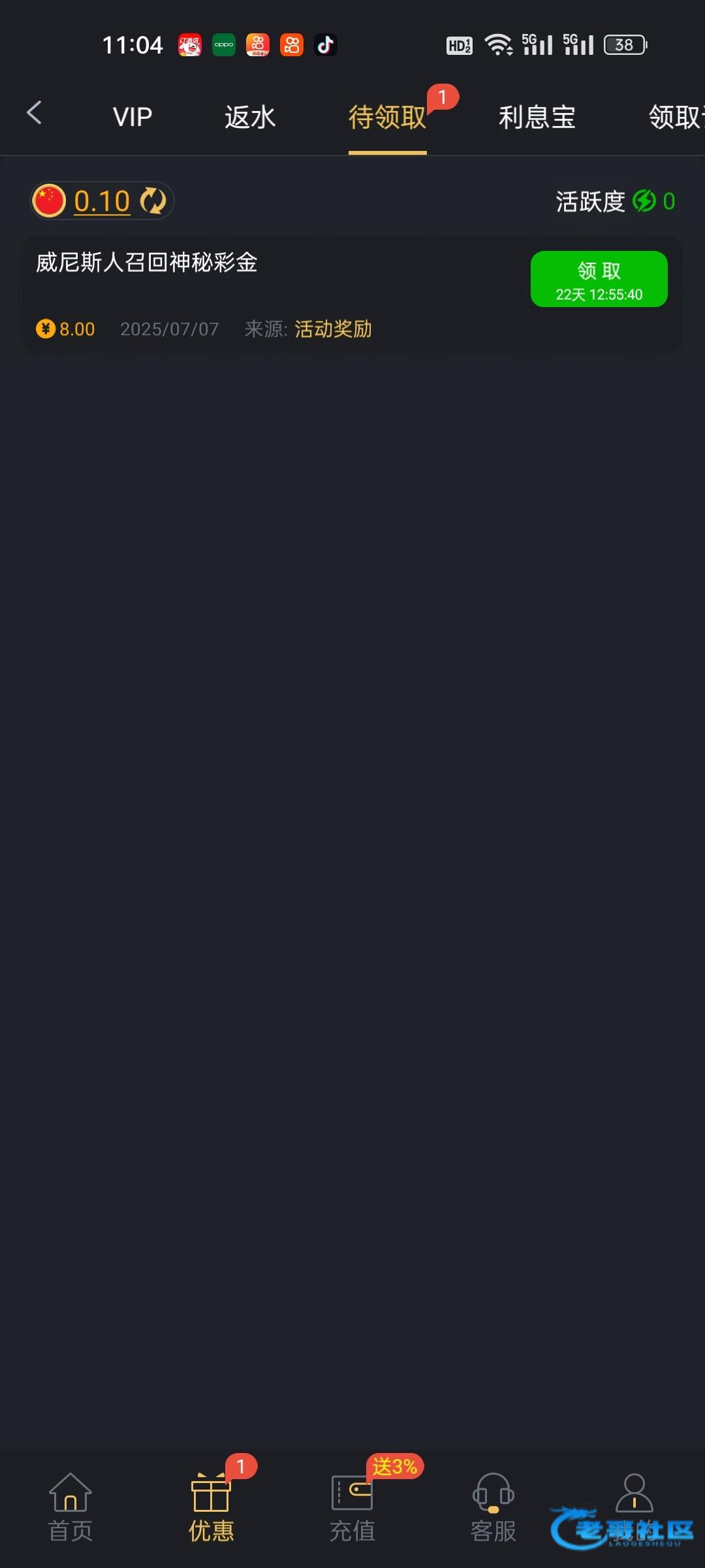 领了8元打了9元流水,这台子没法玩充了2100总流水4400,一分钱没提过。杀的一b