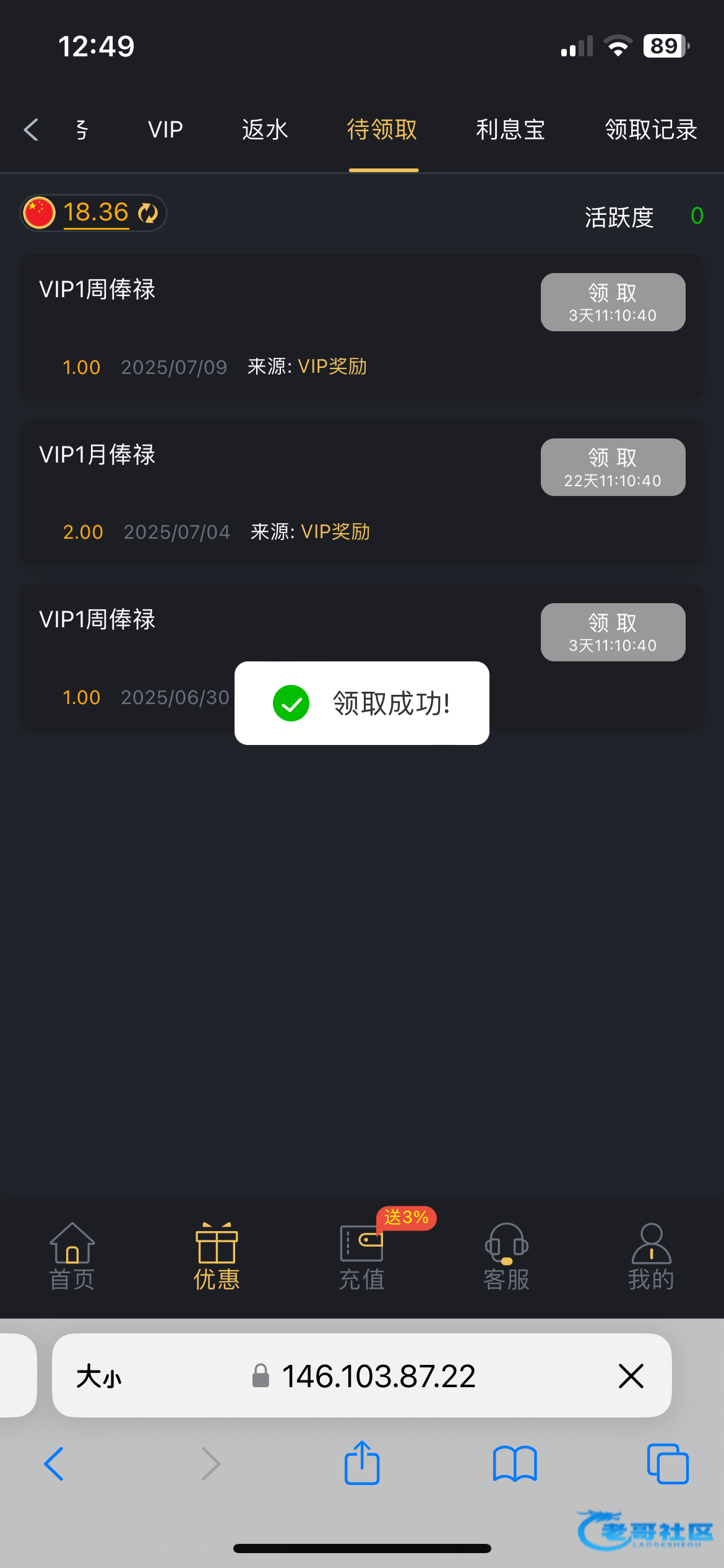 给了18,这个台子特别杀,输了几千,两倍流水都打不到