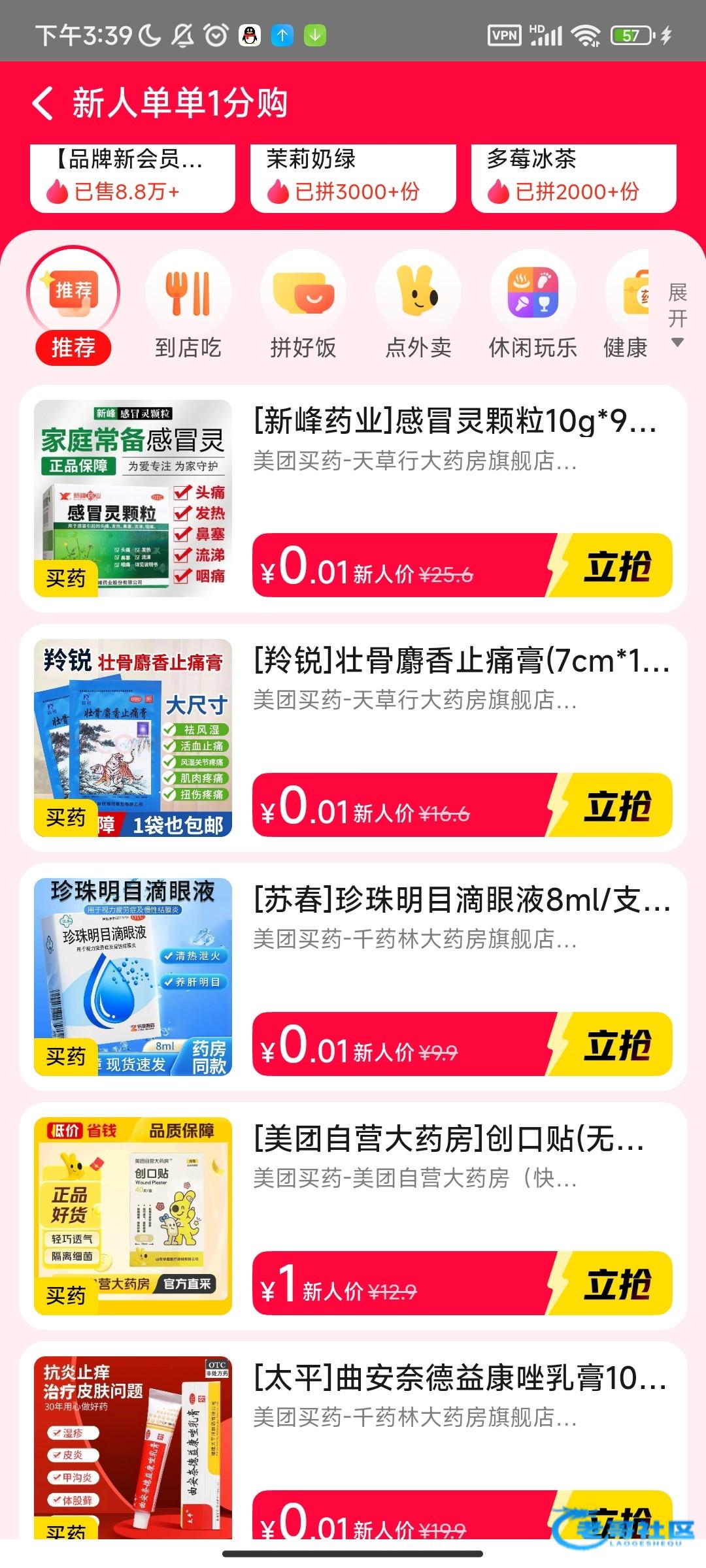 美团搜索单单一分钱,然后再点一下搜索才能跳转,需要的去试试,没在美团买过药品的都可以,我试了两个号都有,如果没有无视就好了