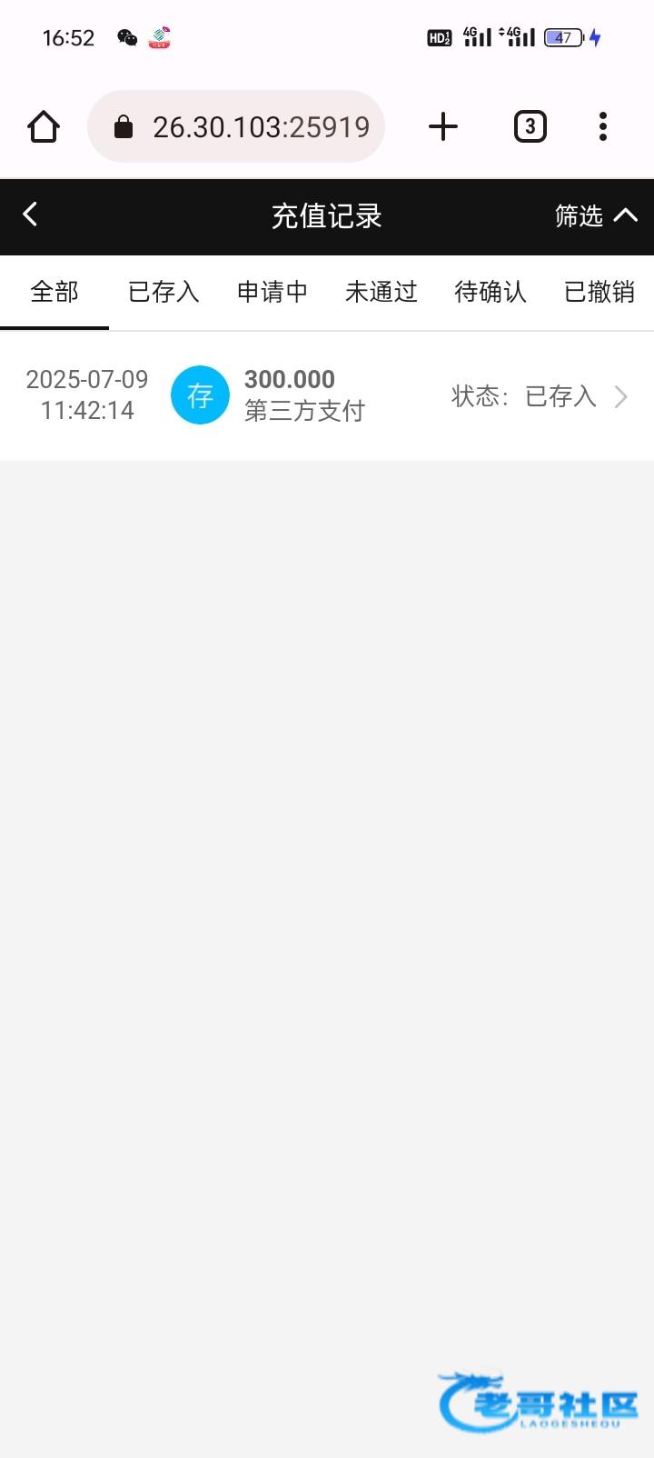 你过 1个星期去找他,就说出款没到账。把你上分这张记录留着