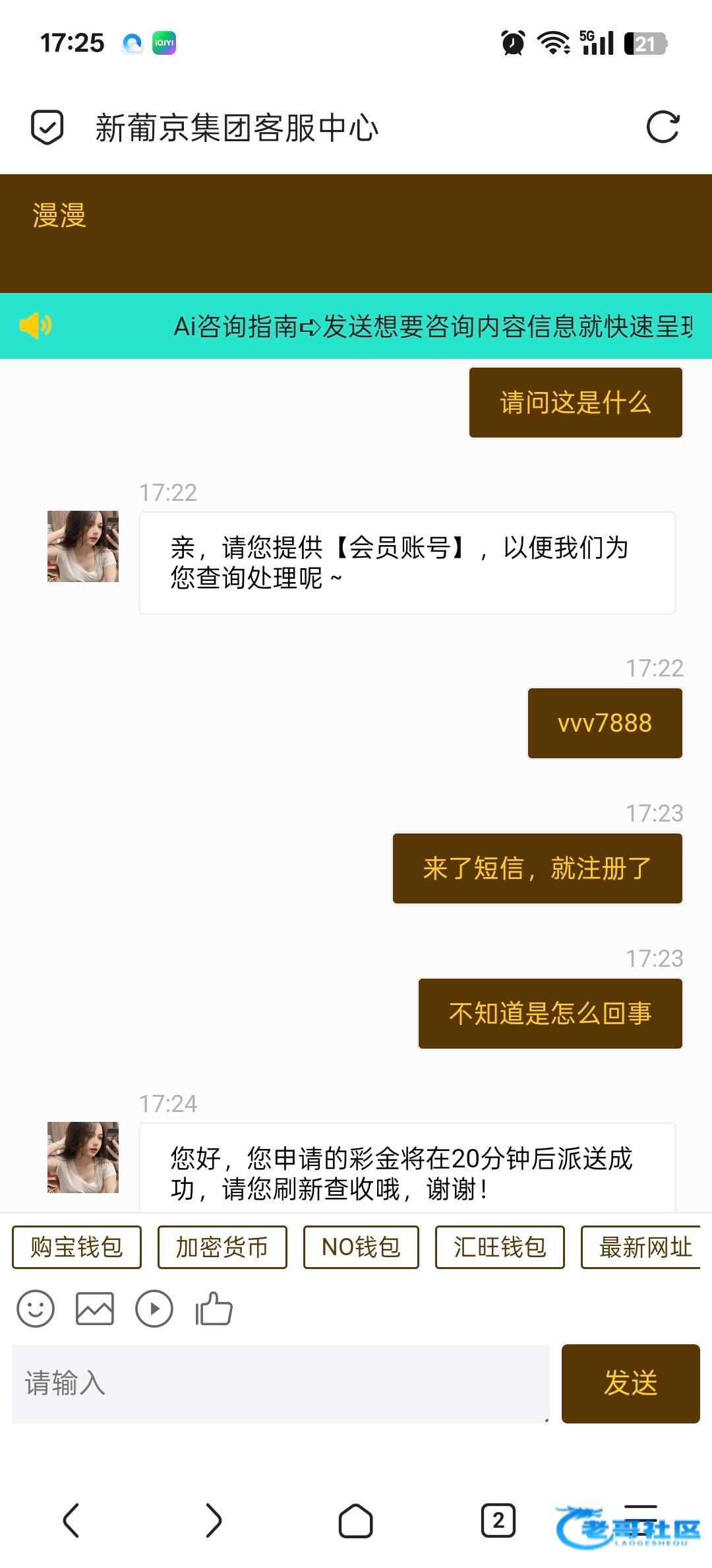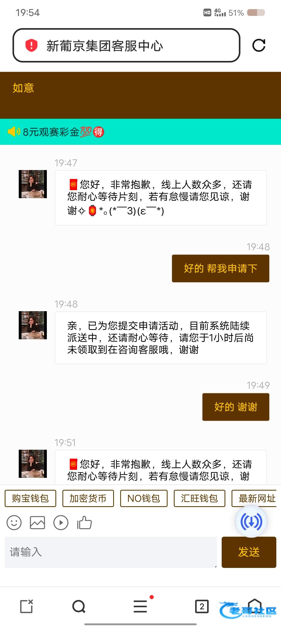他妈的,快一小时了,给客服发消息也不回,彩金也没到,一开始我都没说账号,他就说一个小时之内到