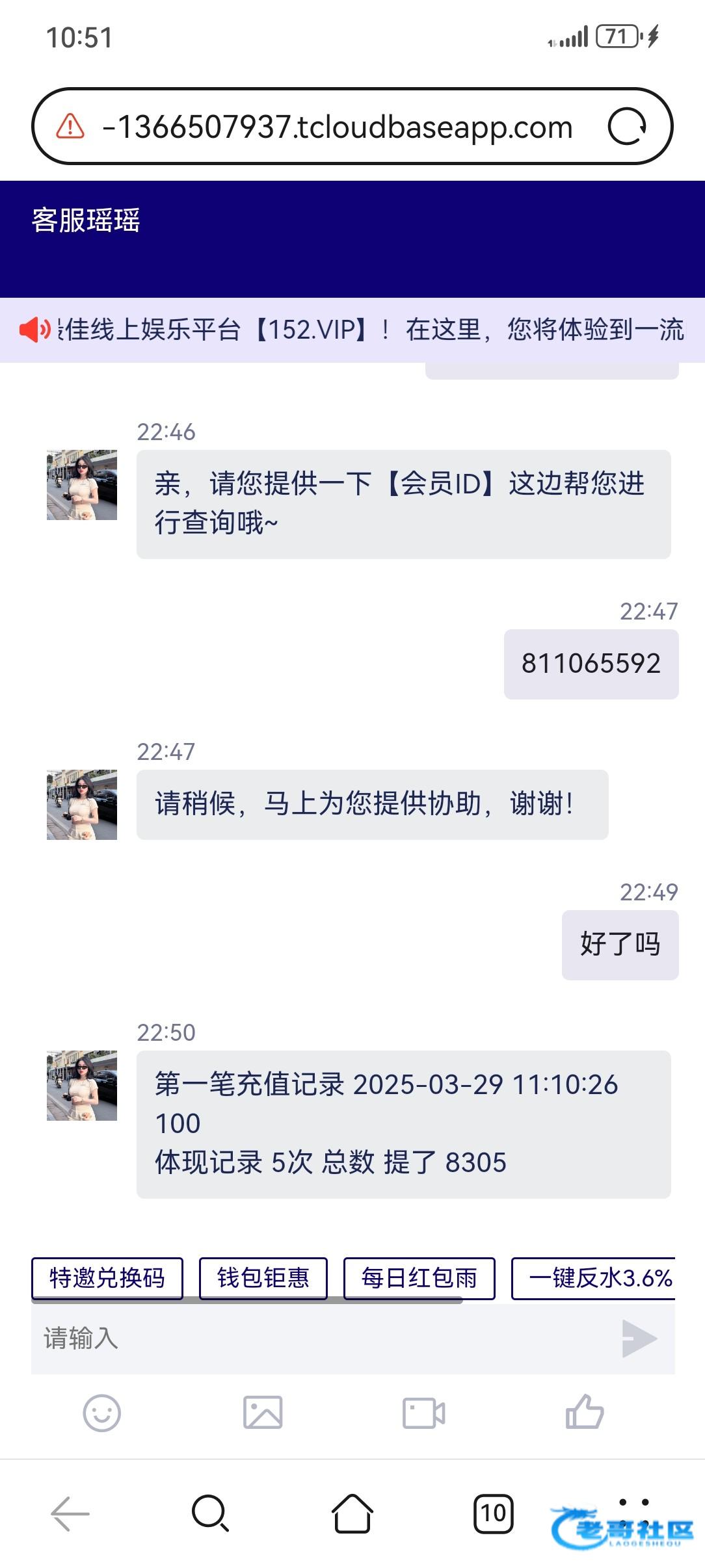 记得那天晚上在老哥网领了星空电子彩金。打上5000多以为不会出款。后面藏免费充值了100。结果到账了。我记得充值100嫖了9q多。客服说才8q多,我体现能不清楚吗。有图有真相。骗人死全家。有id可查。
