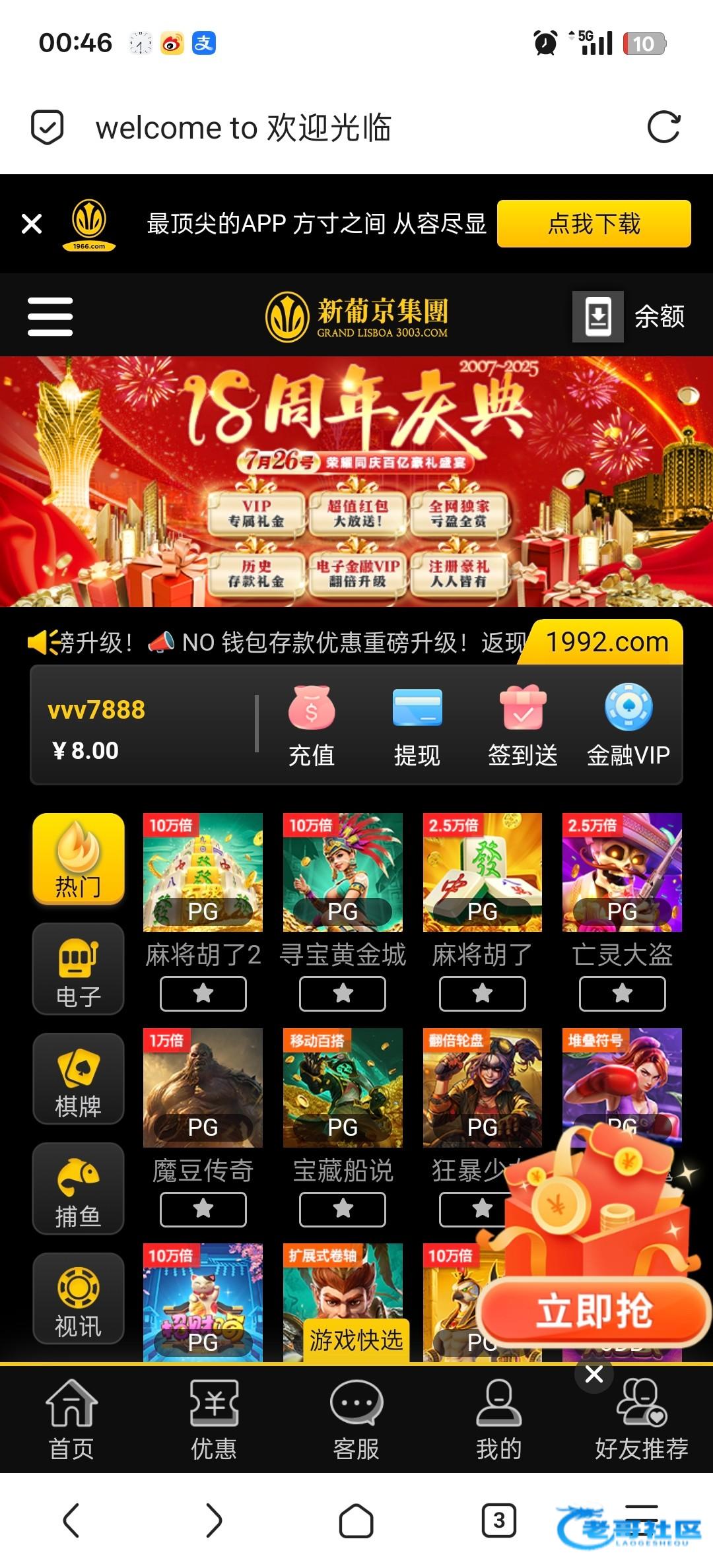 撸过3003新葡京的再去看看,有没有闯关彩金!3003.com 我领了8
