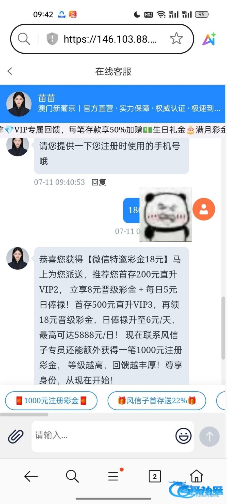 79957.cc,注册联系客服报手机号送了18