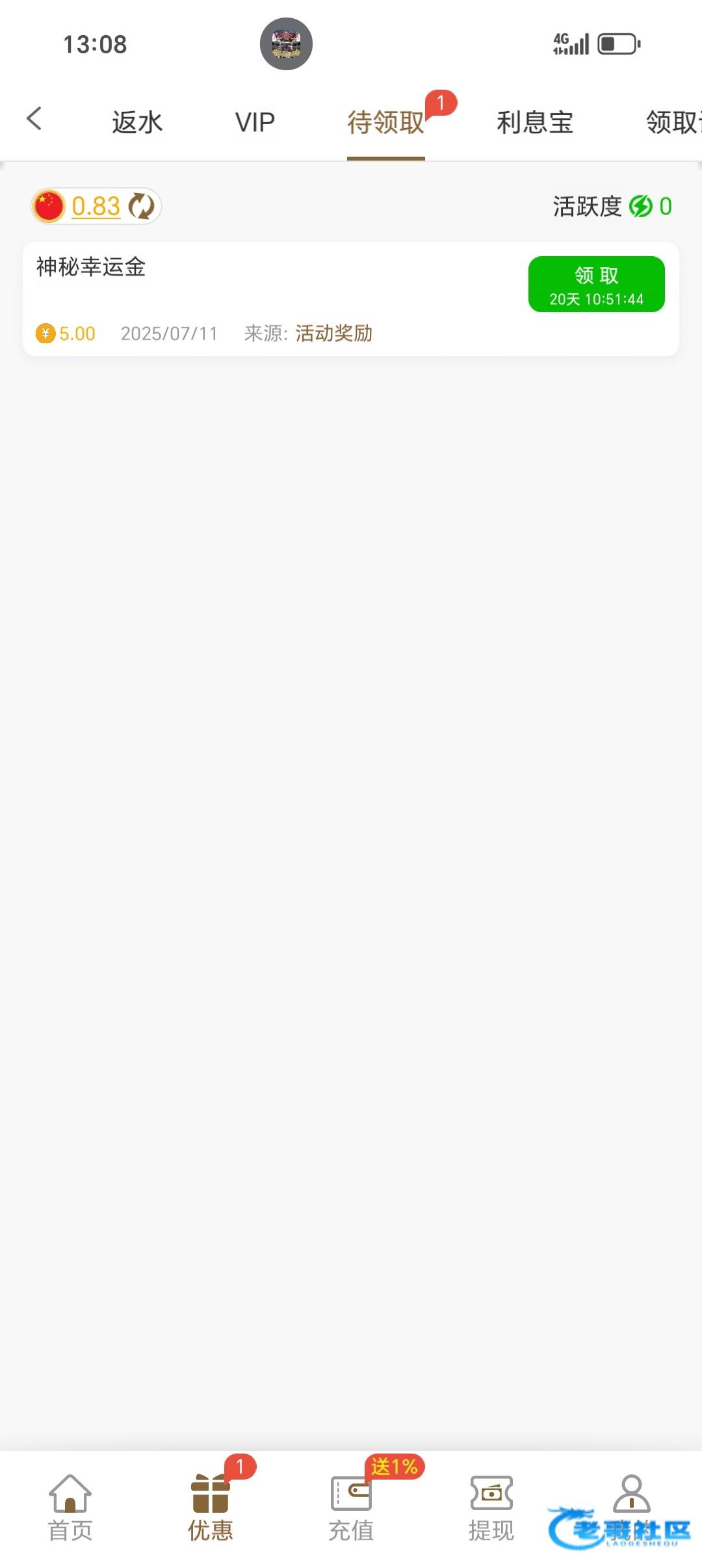 充了几万 很抠的这个台子。神秘彩金最多几块钱。不过出款没卡过