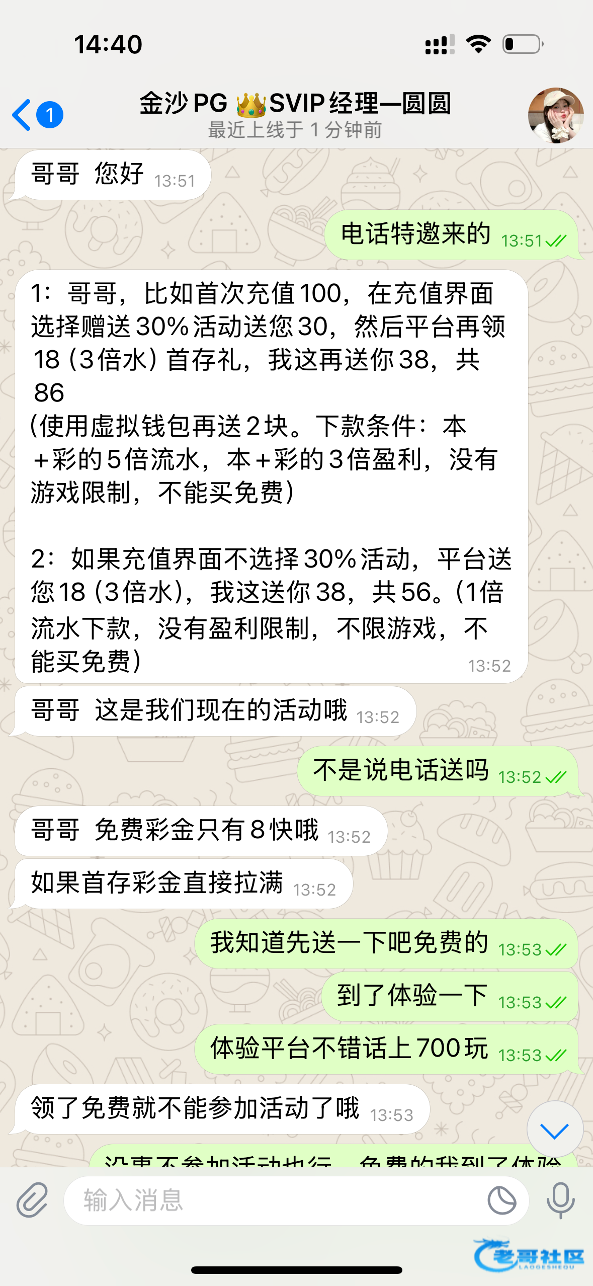 今天给我打电话来了 不送 直接让我充值