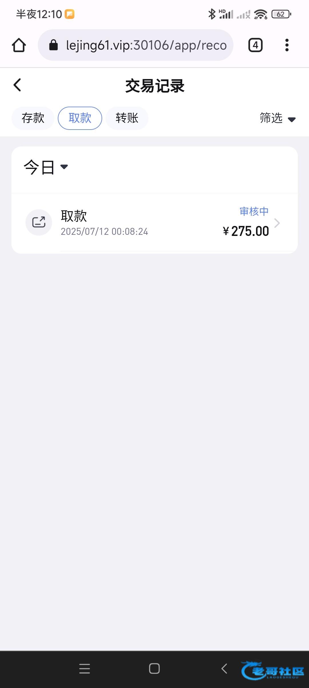 提了275,不知道能不能到账