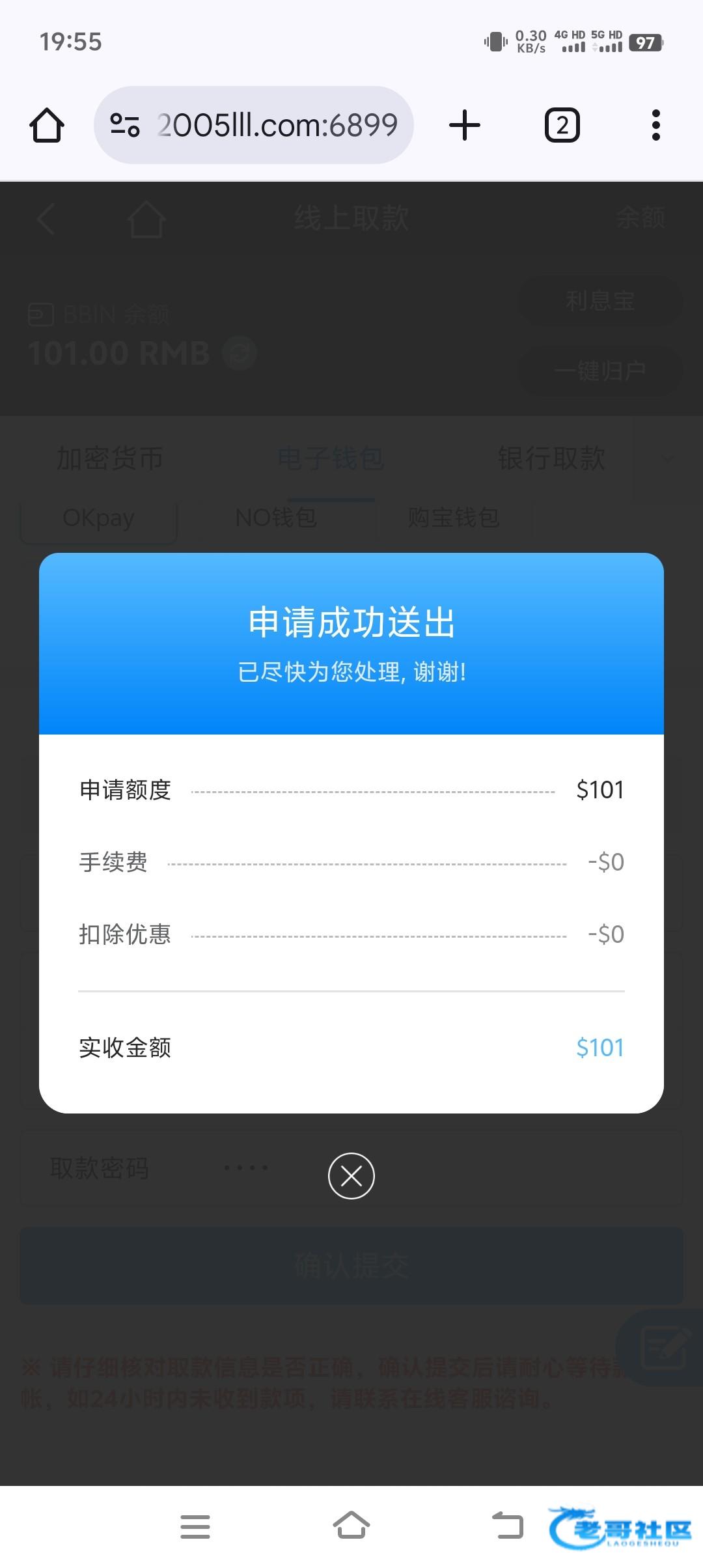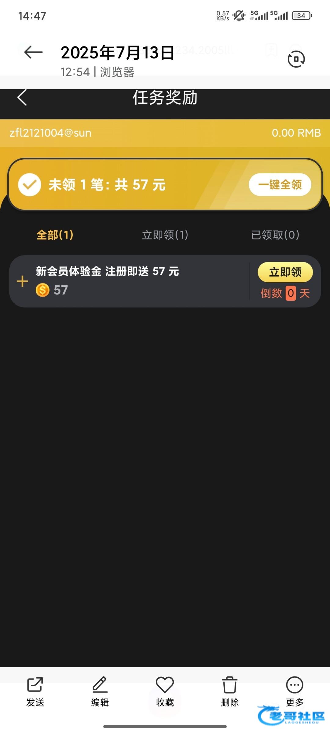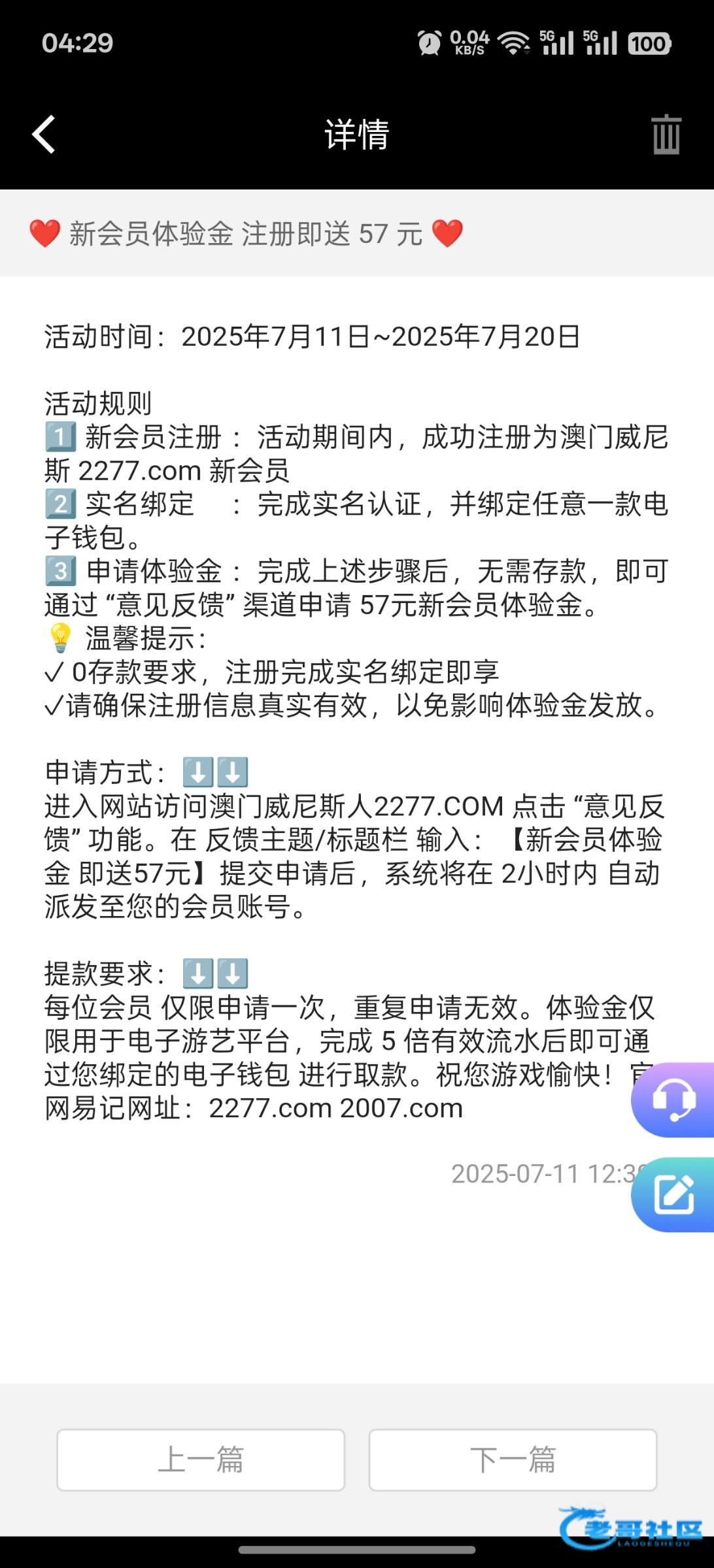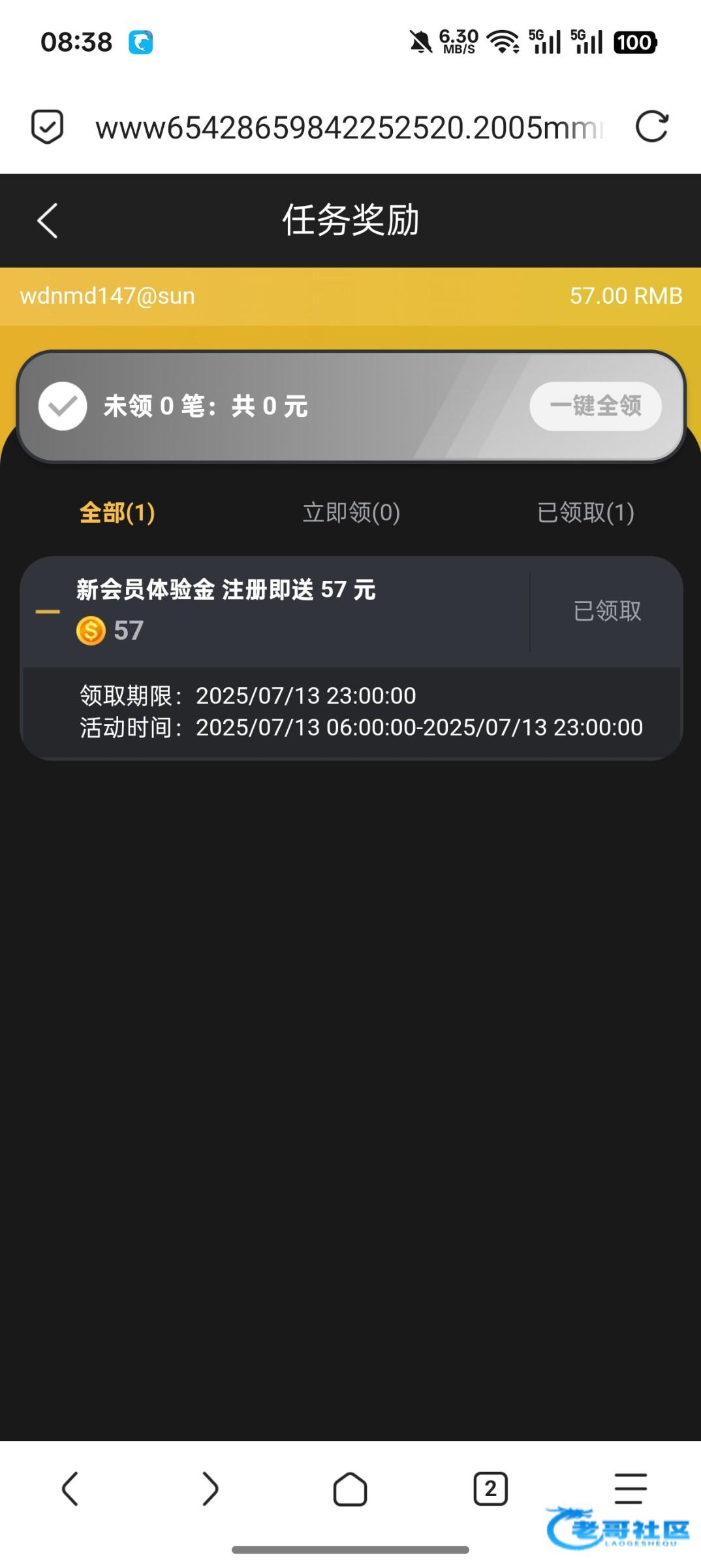 感谢老哥分享,本来就没钱玩了,990抢了1.99申请红包十倍加赠彩金,又晚上注册了这个,中午一登录送了57到了,最高打到290,打够流水剩230提了,秒到,感谢老哥