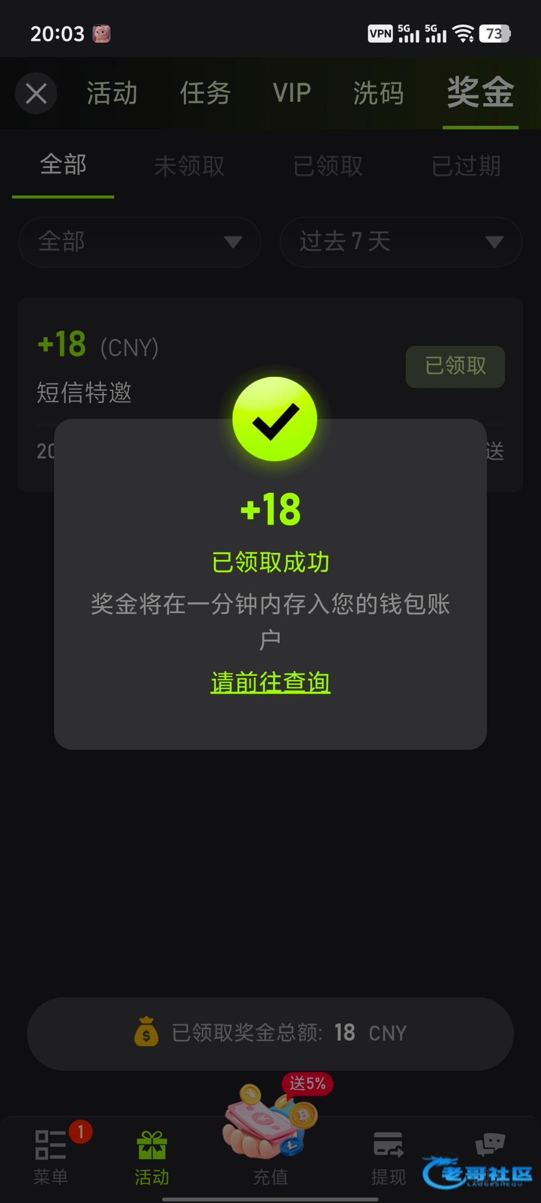 这b台子给我发了好多短信了,下午看到有老哥说有特邀18的活动登上死活收不到短信,想着晚上挂梯子试试结果刚刚去没有入口了 问客服客服要存款100才给 我真服了