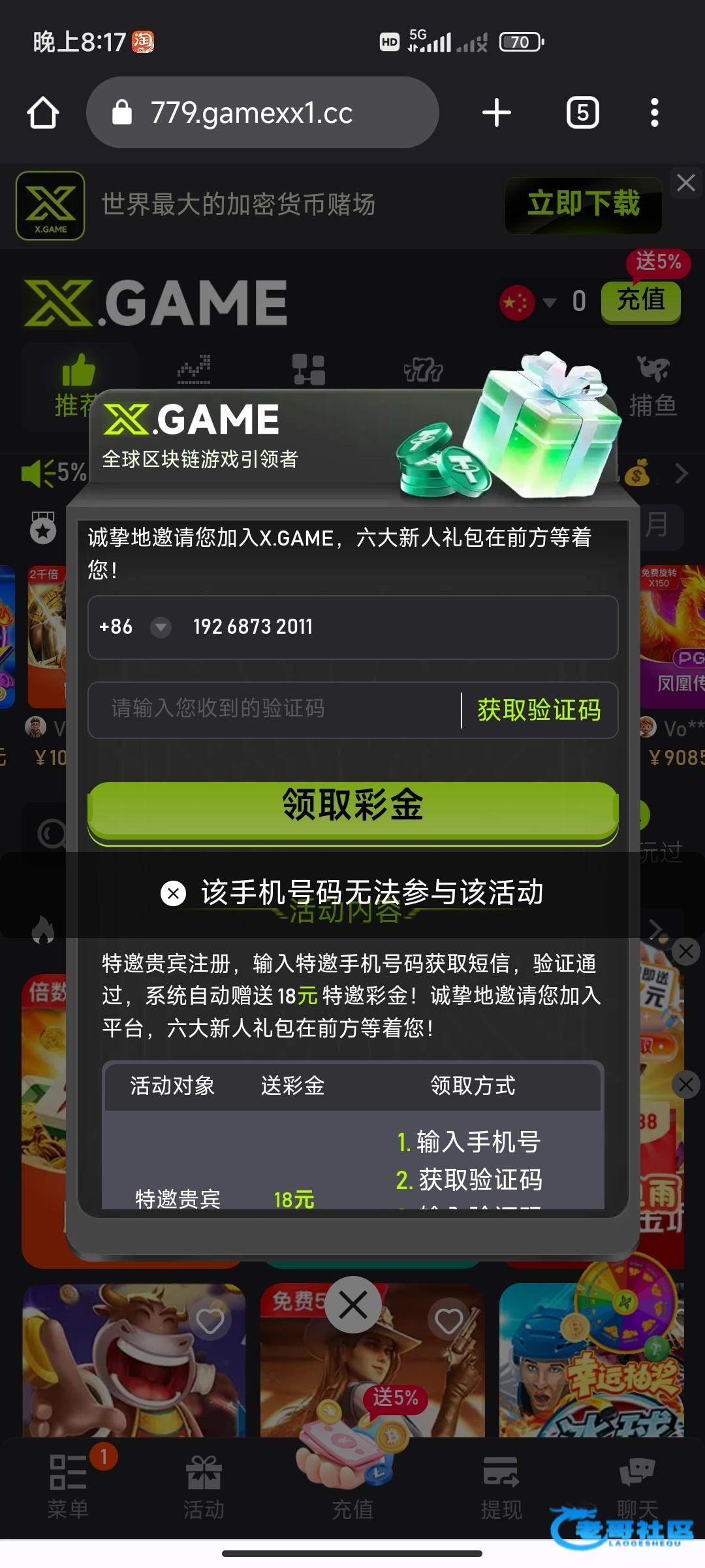 X.GAME 短信特邀碰瓷,邀请码填写 4664.my 必有18彩金
