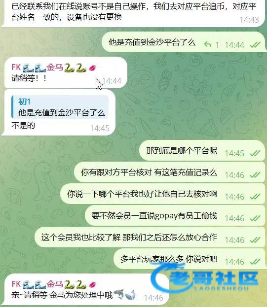 起因是今天990精彩系列14.22提了一笔10900的钱然后38分到达钱包但是仅仅十分钟钱就被官方转走了期间我被挤掉并且登录页面加载不出来等我登录上去之后就发现钱已经被扫出去了后来我找经常玩的台子的工作人员帮我直接问gopay工作人员得到的回复就是我自己冲到别的同实名的平台 但是我连这个平台的账号都没有 而且他们自己都说了gopay使用期间连设备都没更换那么我请问我是在什么情况下能把钱冲到一个连游戏账号都没有的平台呢 总之避雷gopay监守自盗今天黑一万明天就敢黑十万有大额建议走u