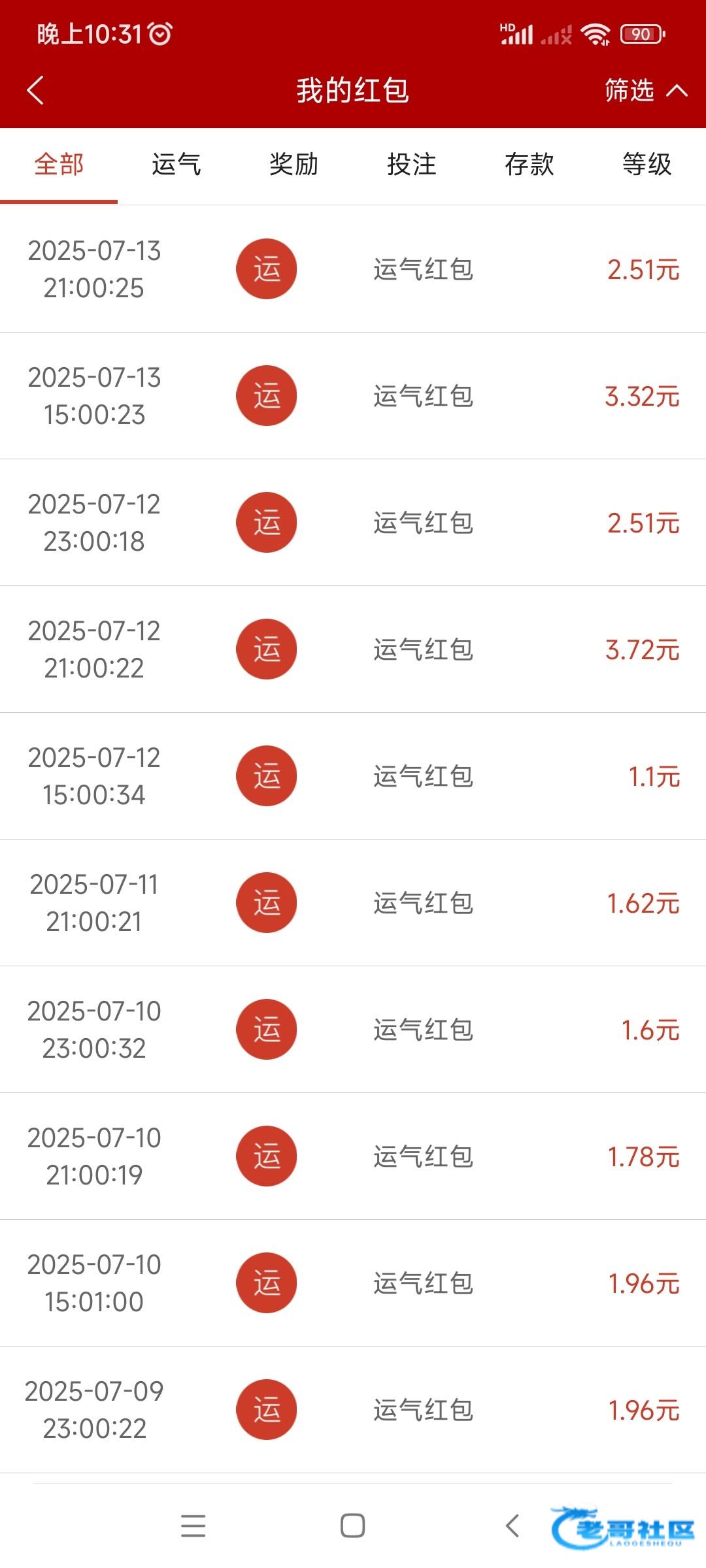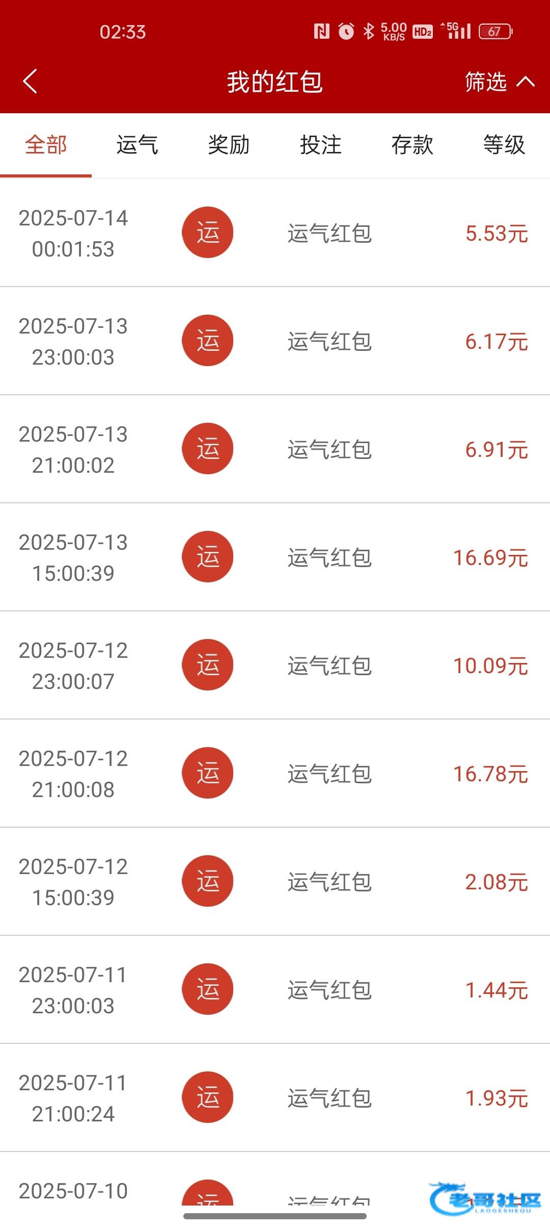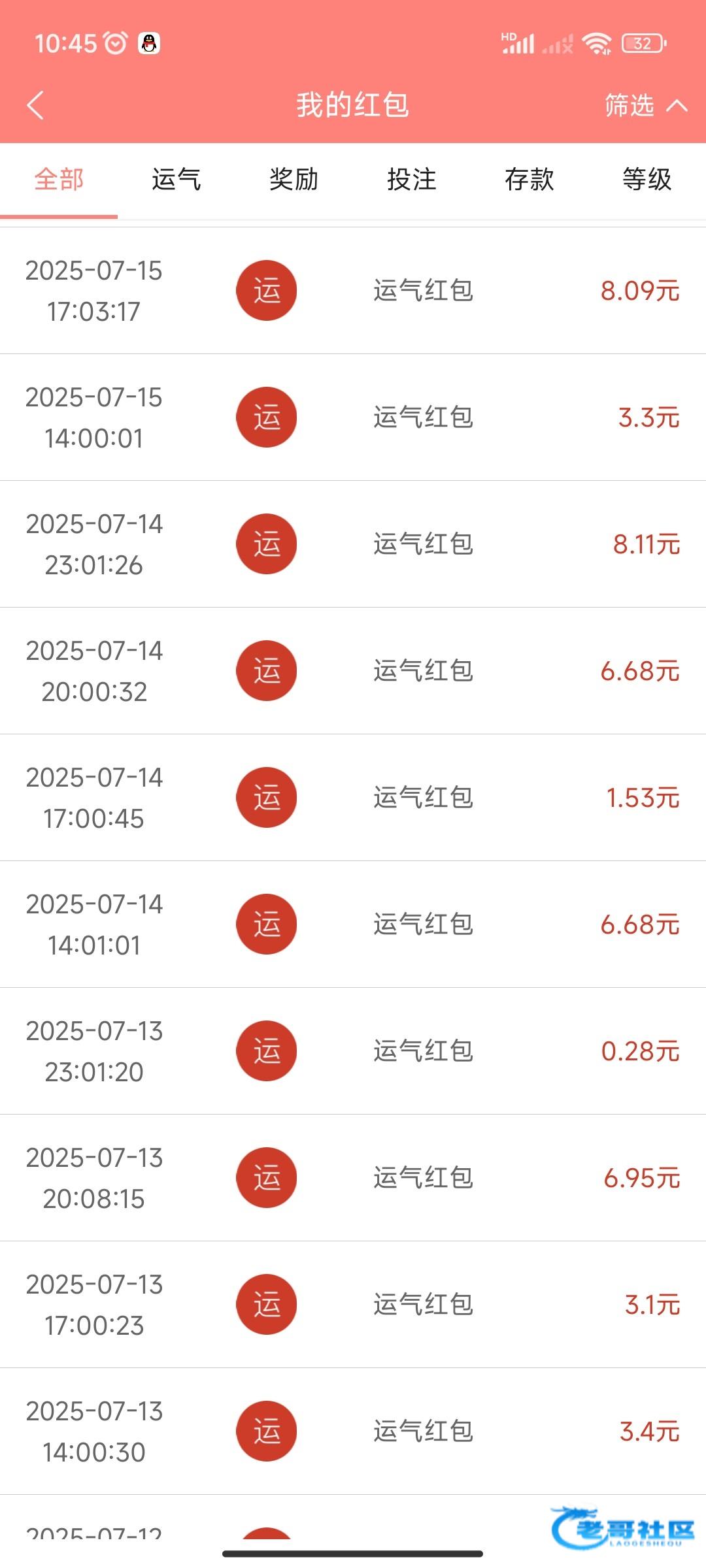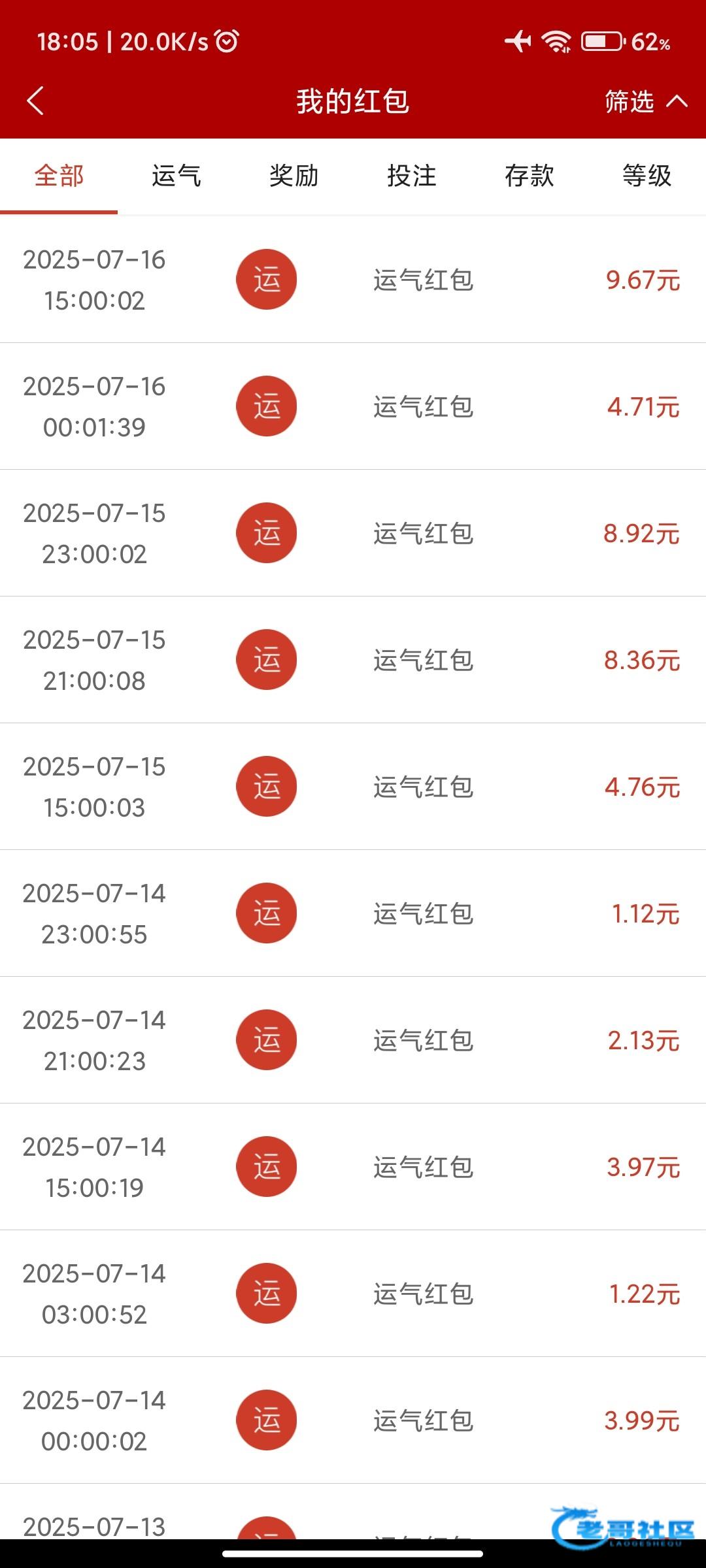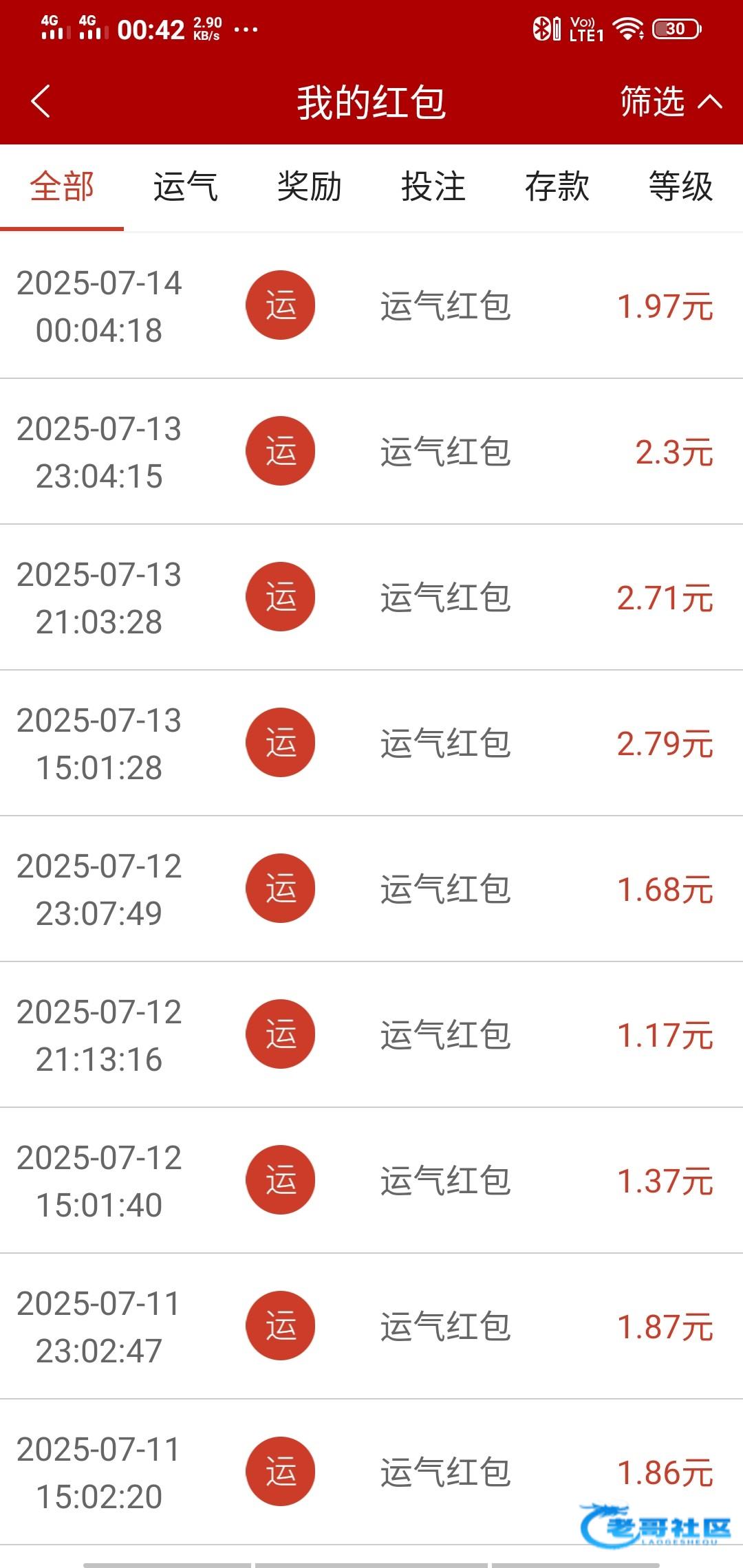 看了一下大家抢的红包都是一样啊,平时都是1块左右有的2块左右,我还以为就是我这样