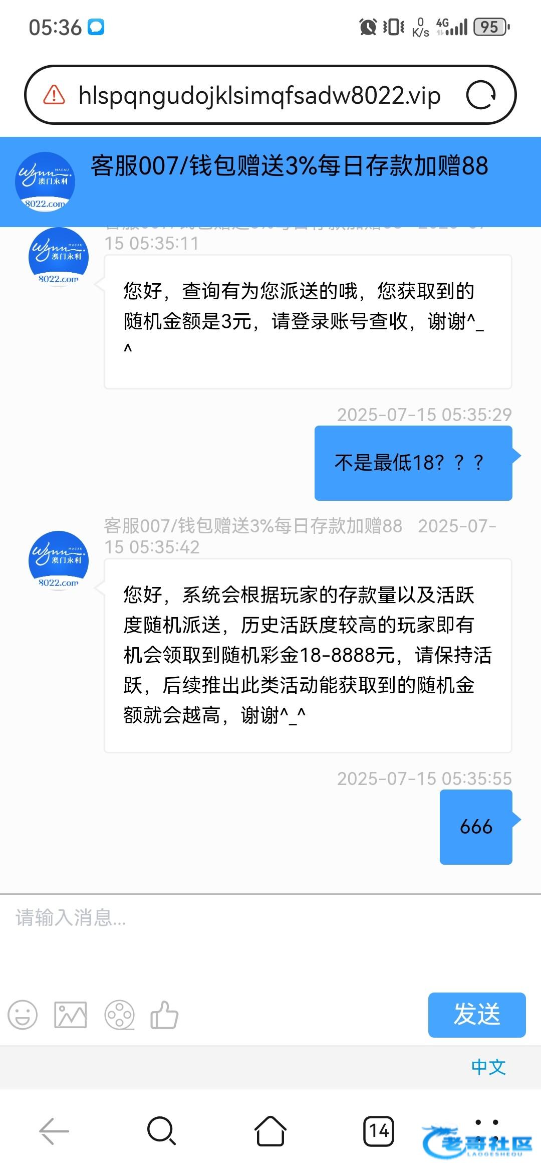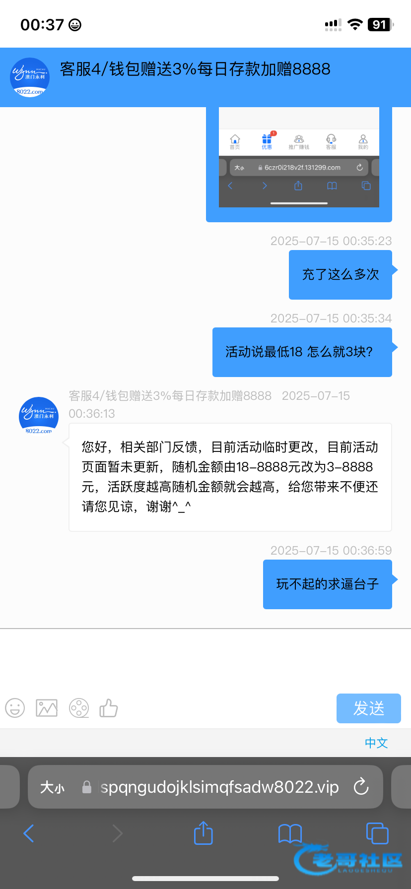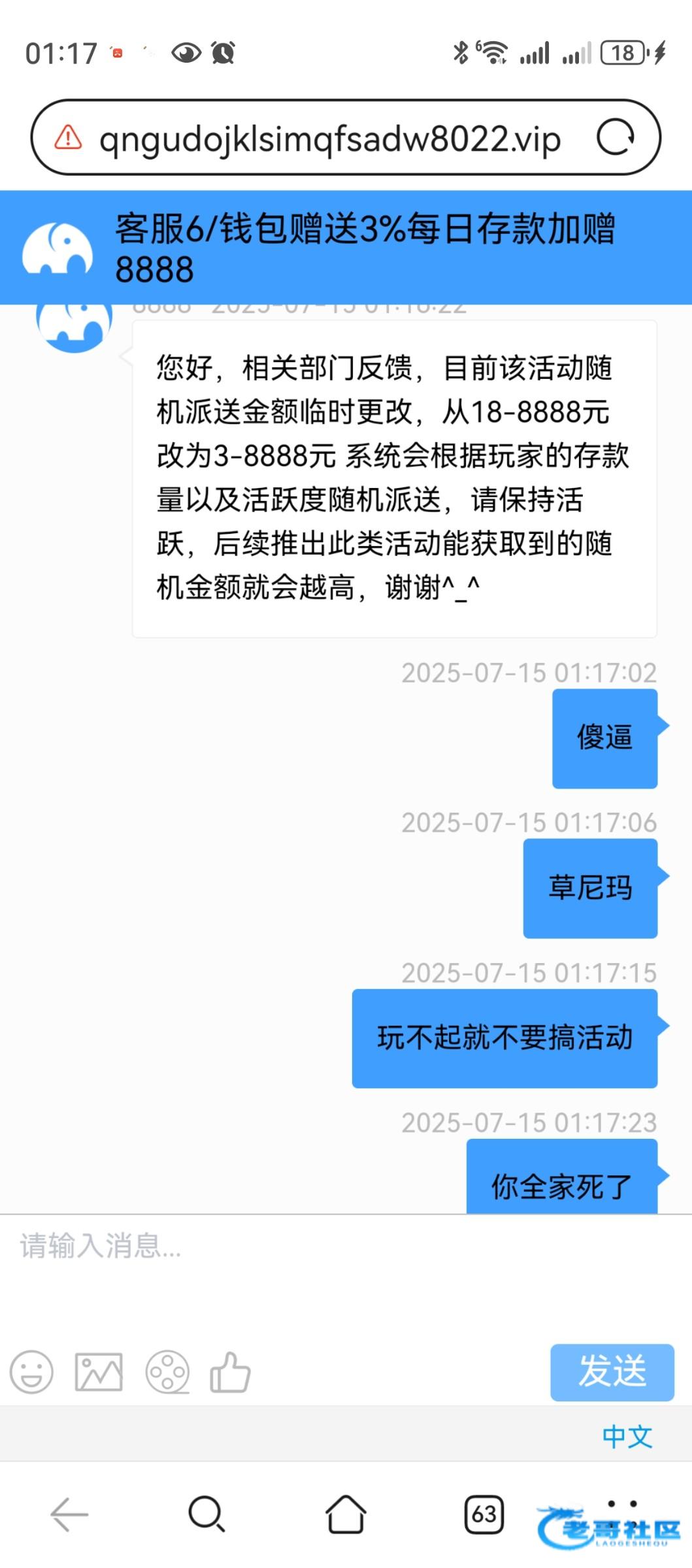 说送18 送了8 问客服活动改了送3-888 避雷 别充值了