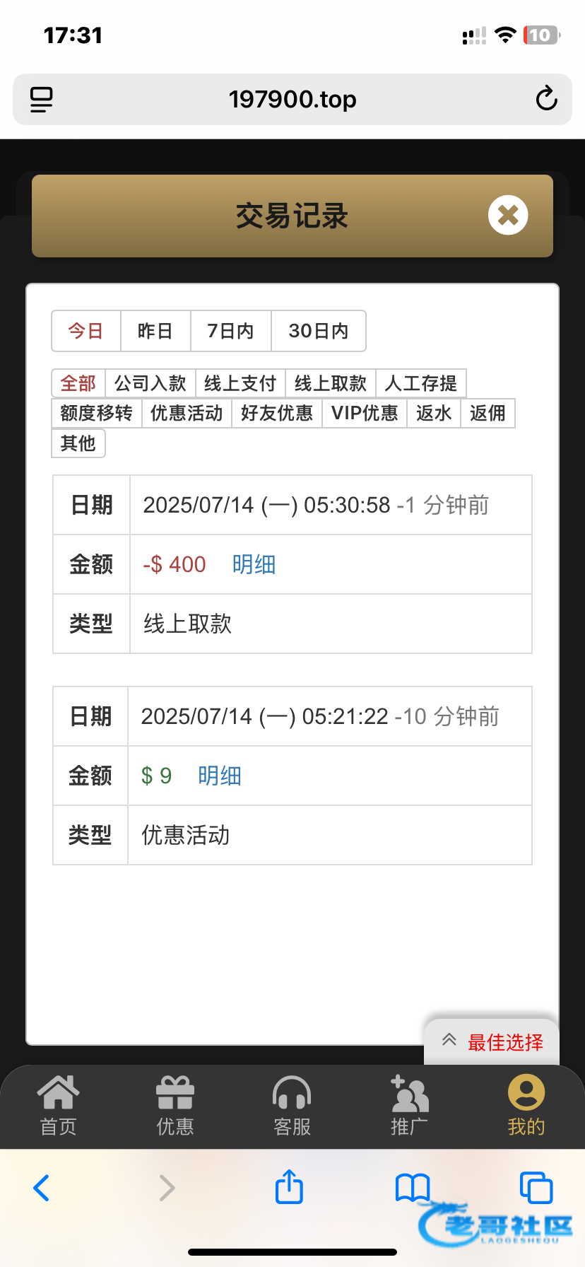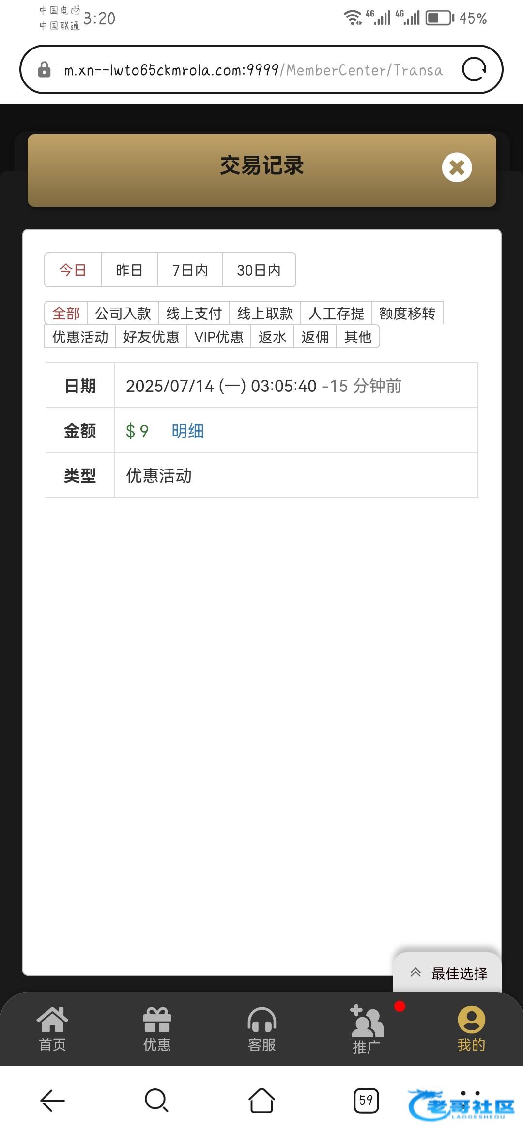 这个公司所有台子都这样,老号也给,就是金额太少,全是9块