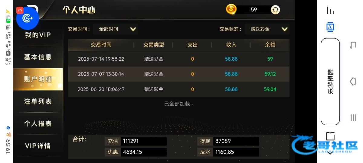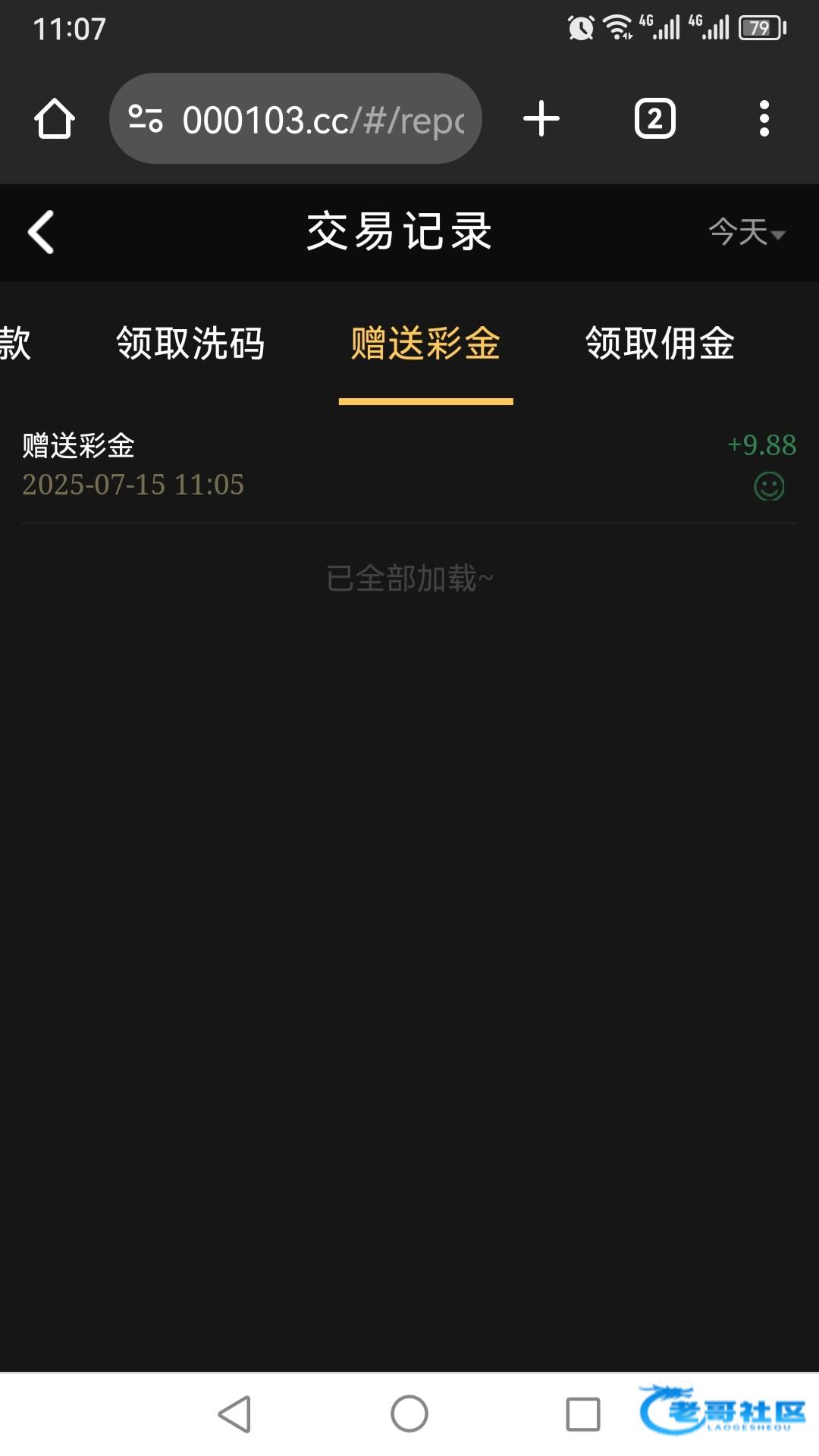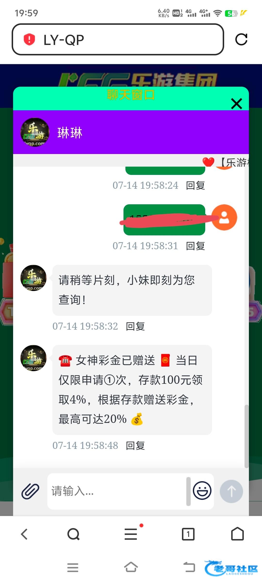 一周前给我送过一次!刚刚这个平台的机器人又打电话给我了!这个平台从去年就没充值过了!每个月都送两三次彩金!刚刚我找客服领取了59彩金!有号的老哥自行去碰瓷!请勿充值!