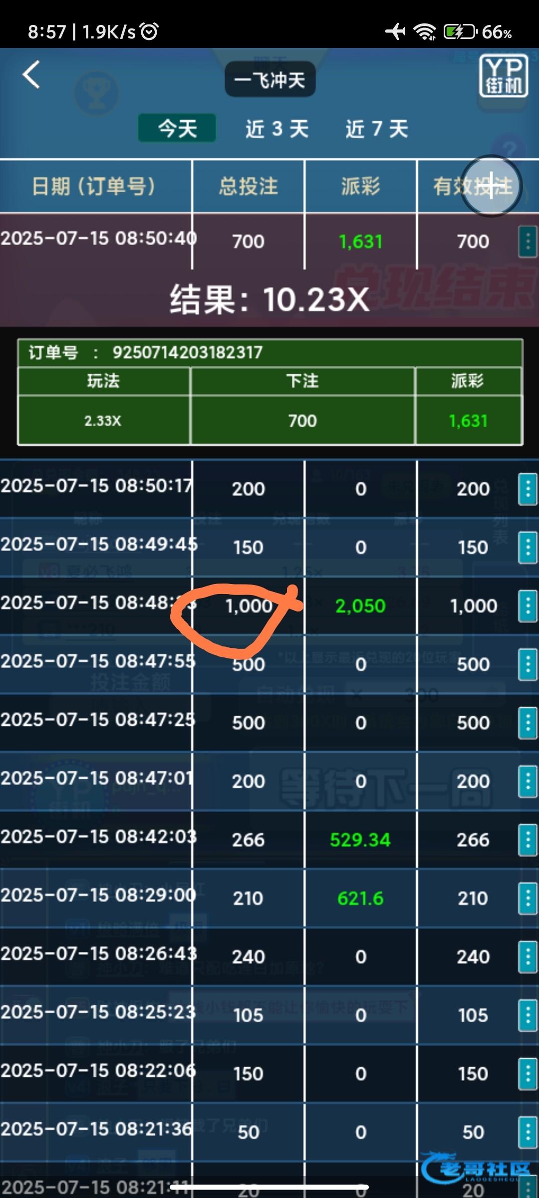 看你下注几把两三百块都是两三倍就收,一千块还设置13倍手肘了