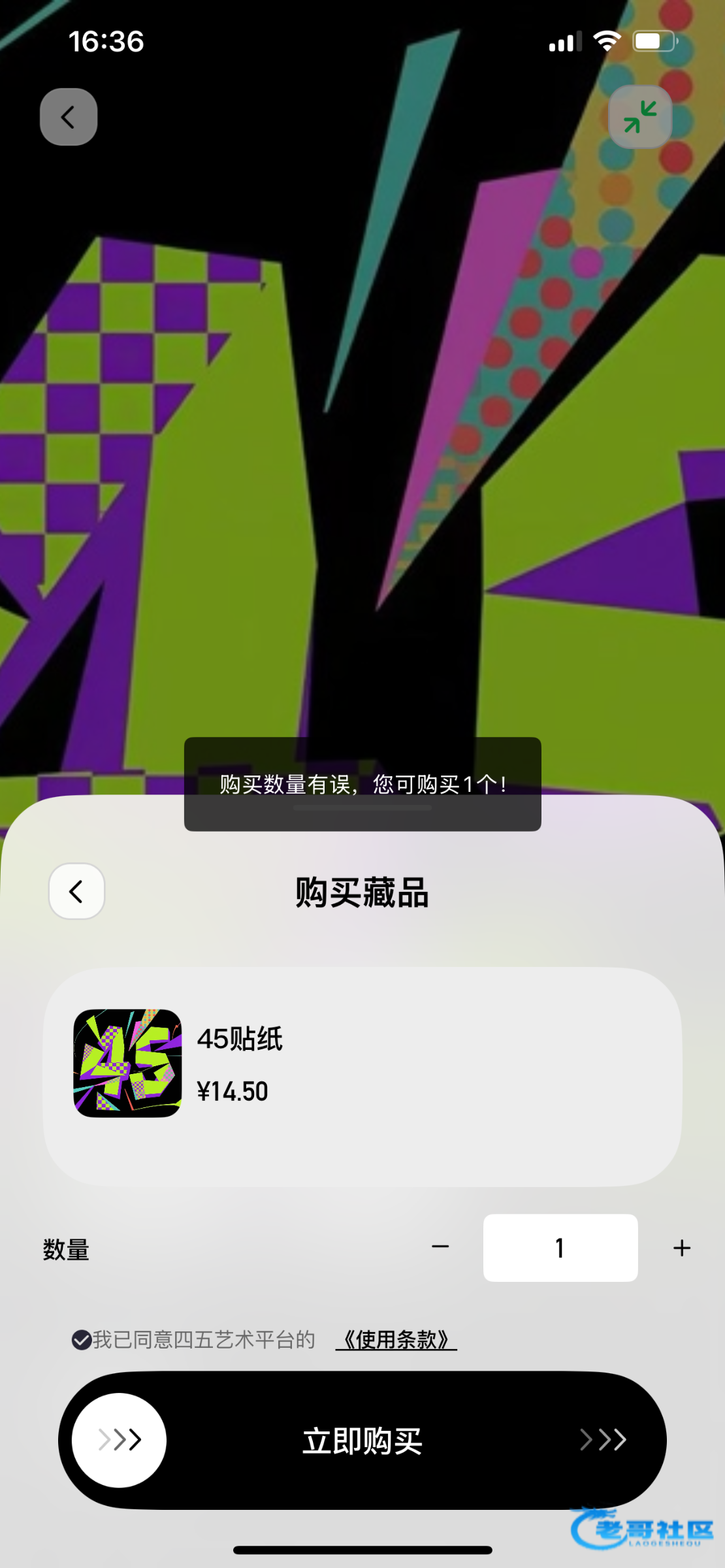 45art 数藏新人出人头,买14.5的藏品,钱包免费 4点购买,现在去咸鱼挂30秒出,那张图可能有三位数左右,买了这个图,开巿场,应该有三位数,大大的海底捞