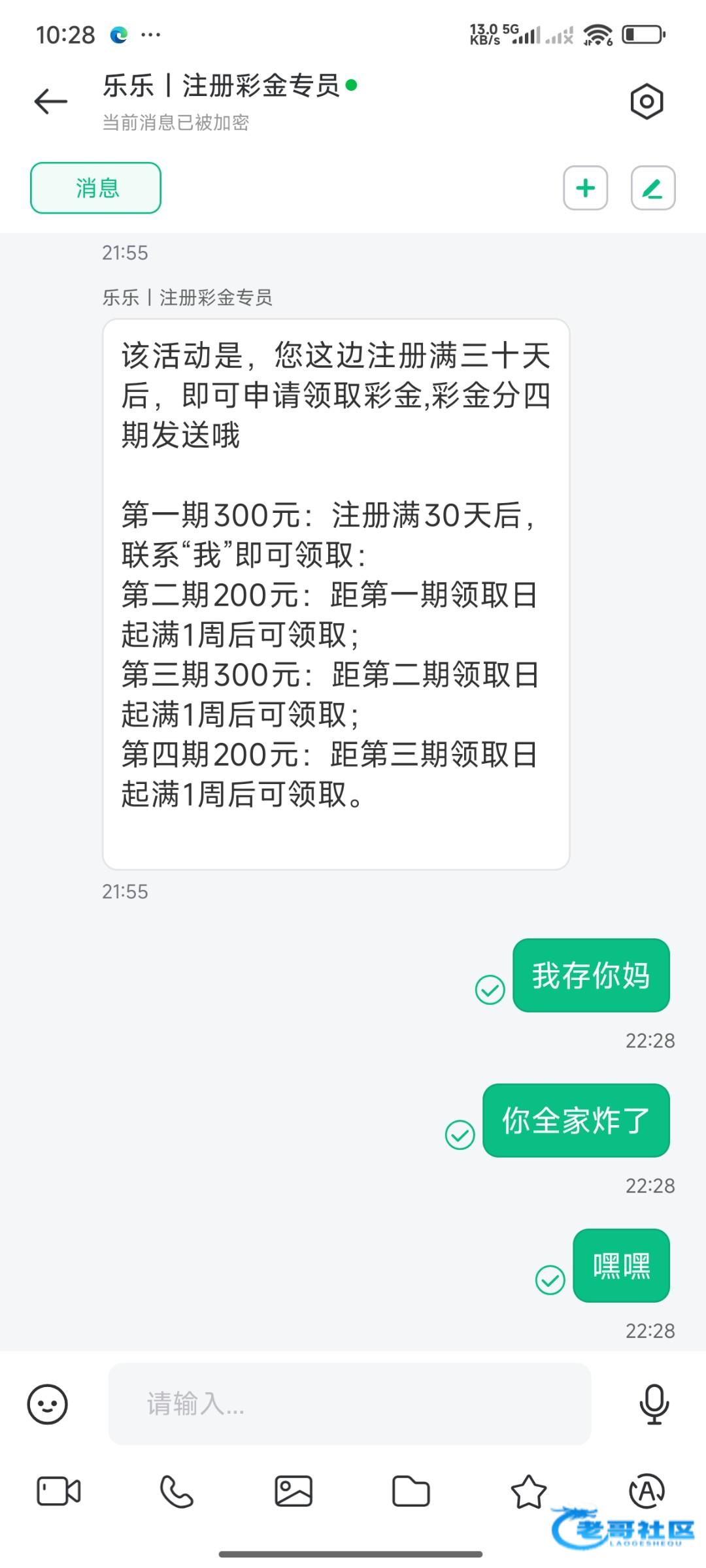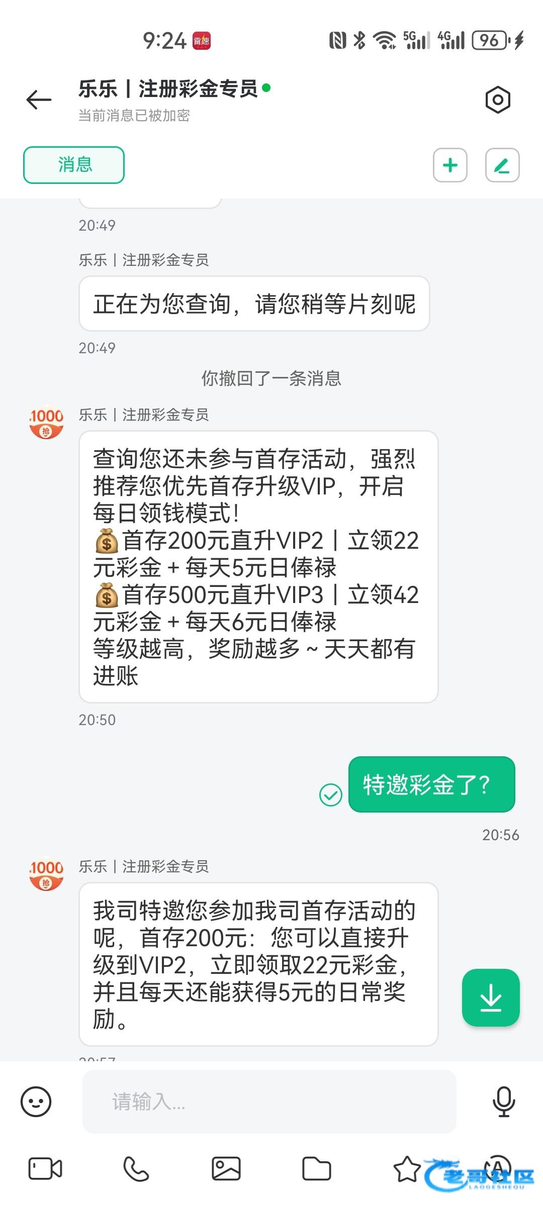 每个人分配的注册彩金专员不同的,不给就换个号试试