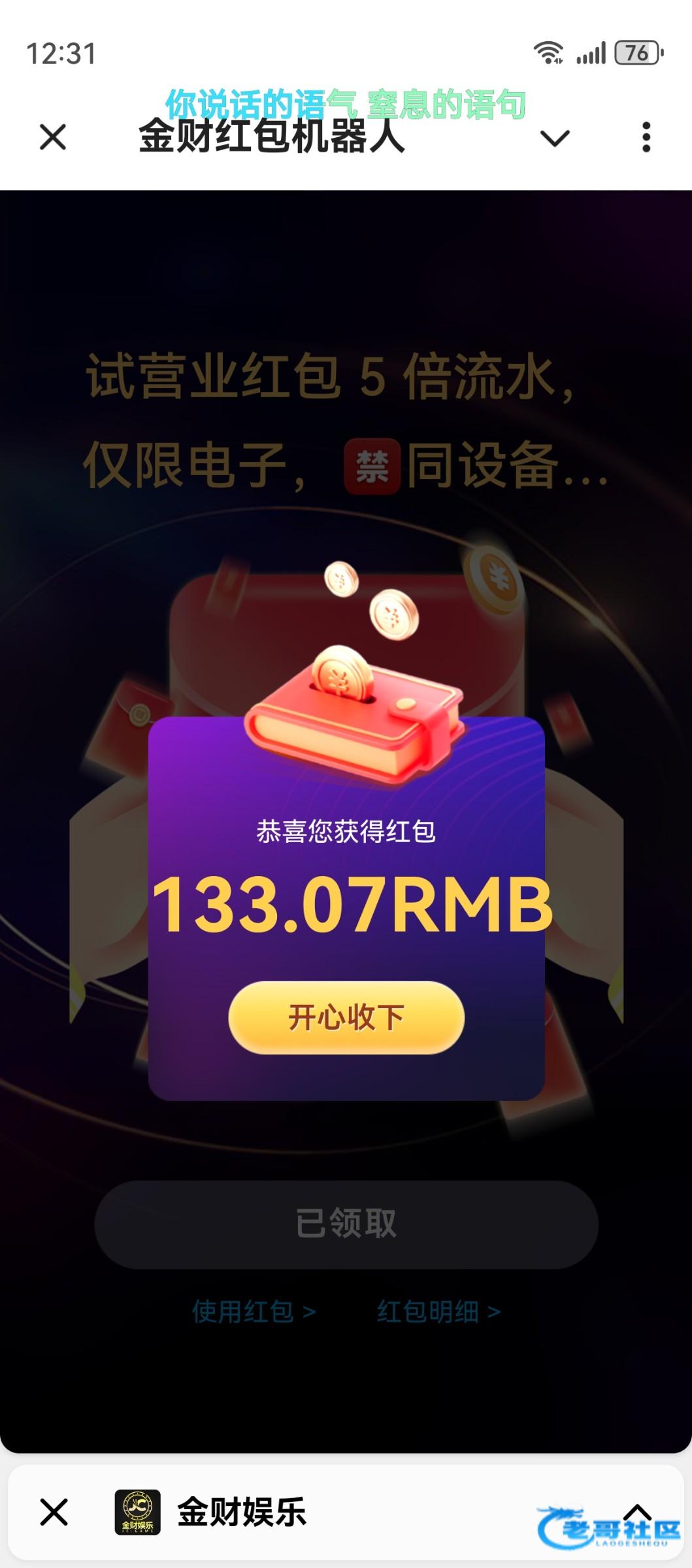凌晨 12.30 发试营业红包应该不大