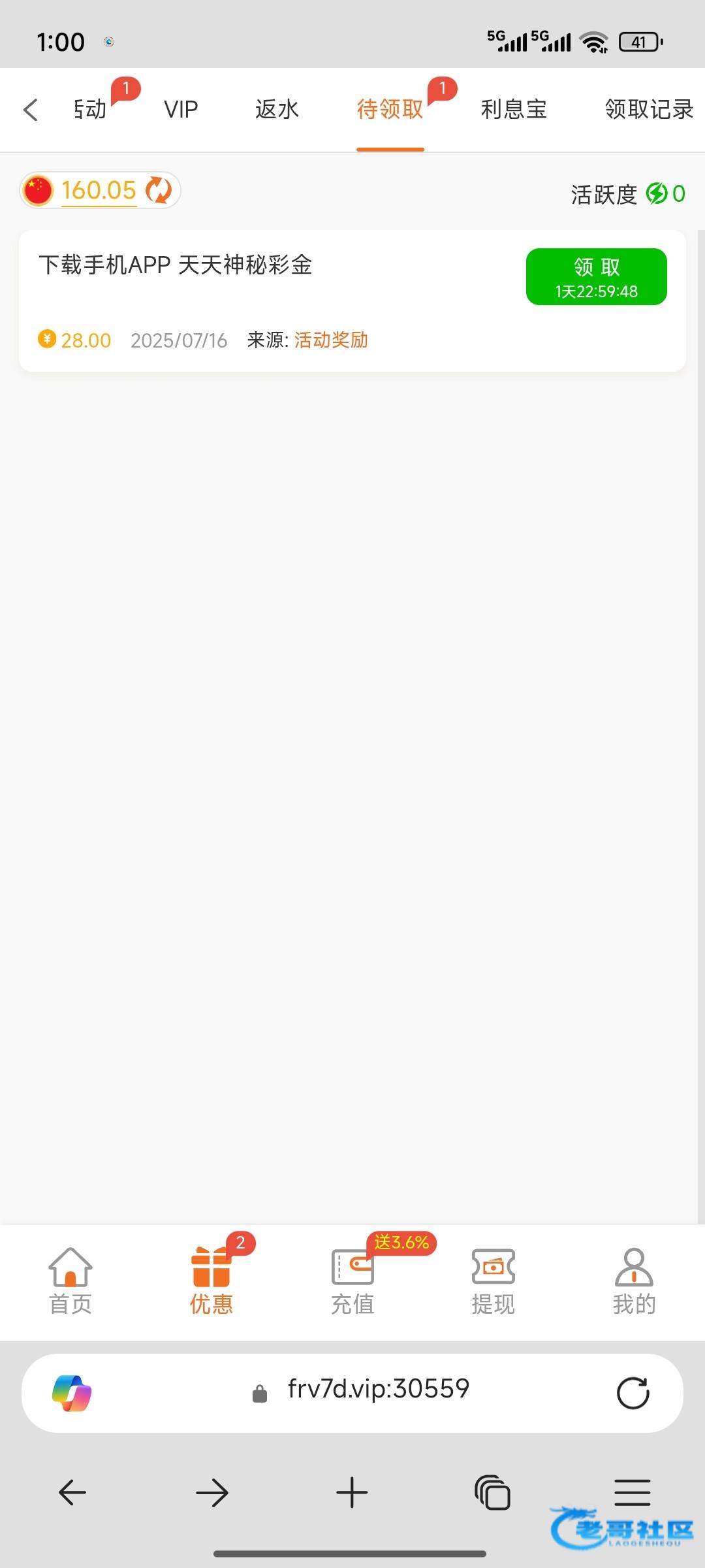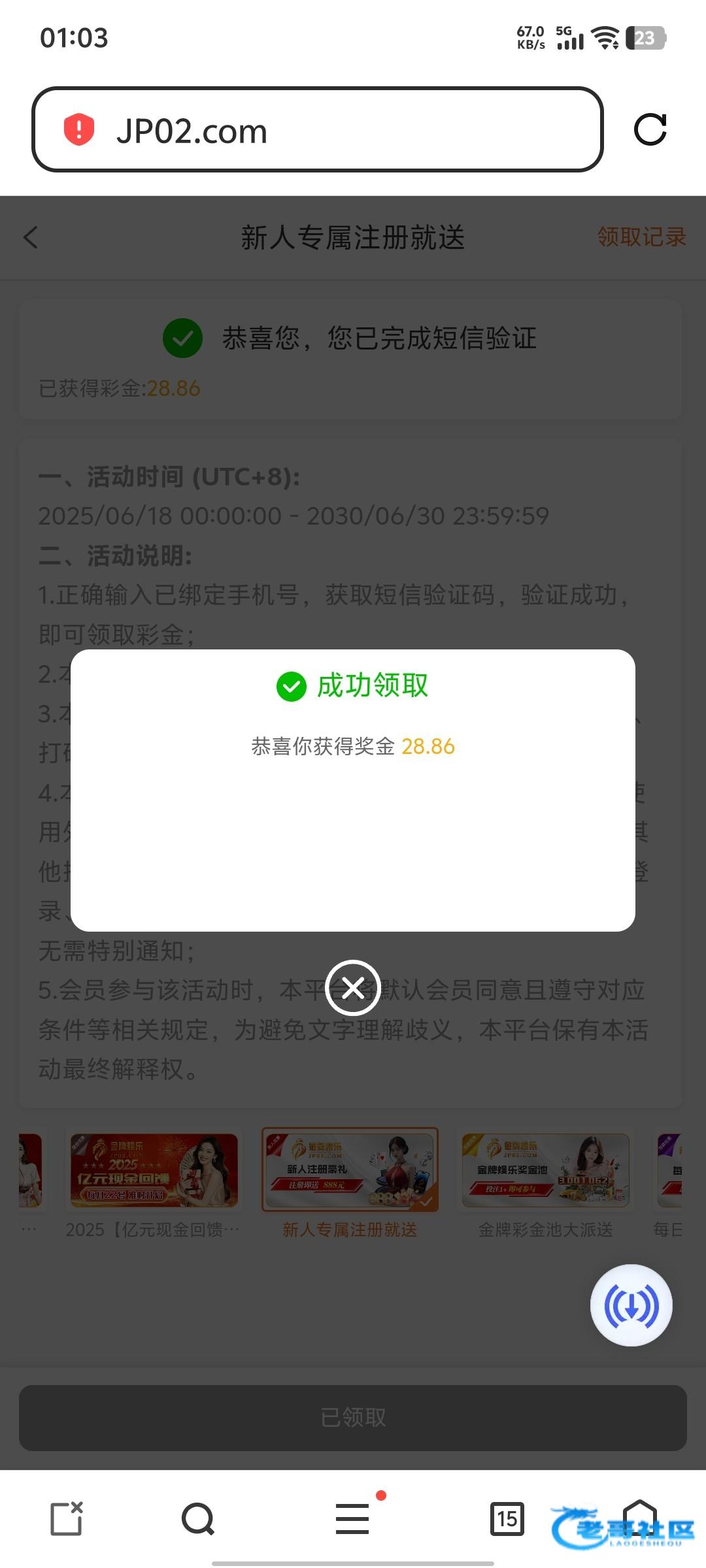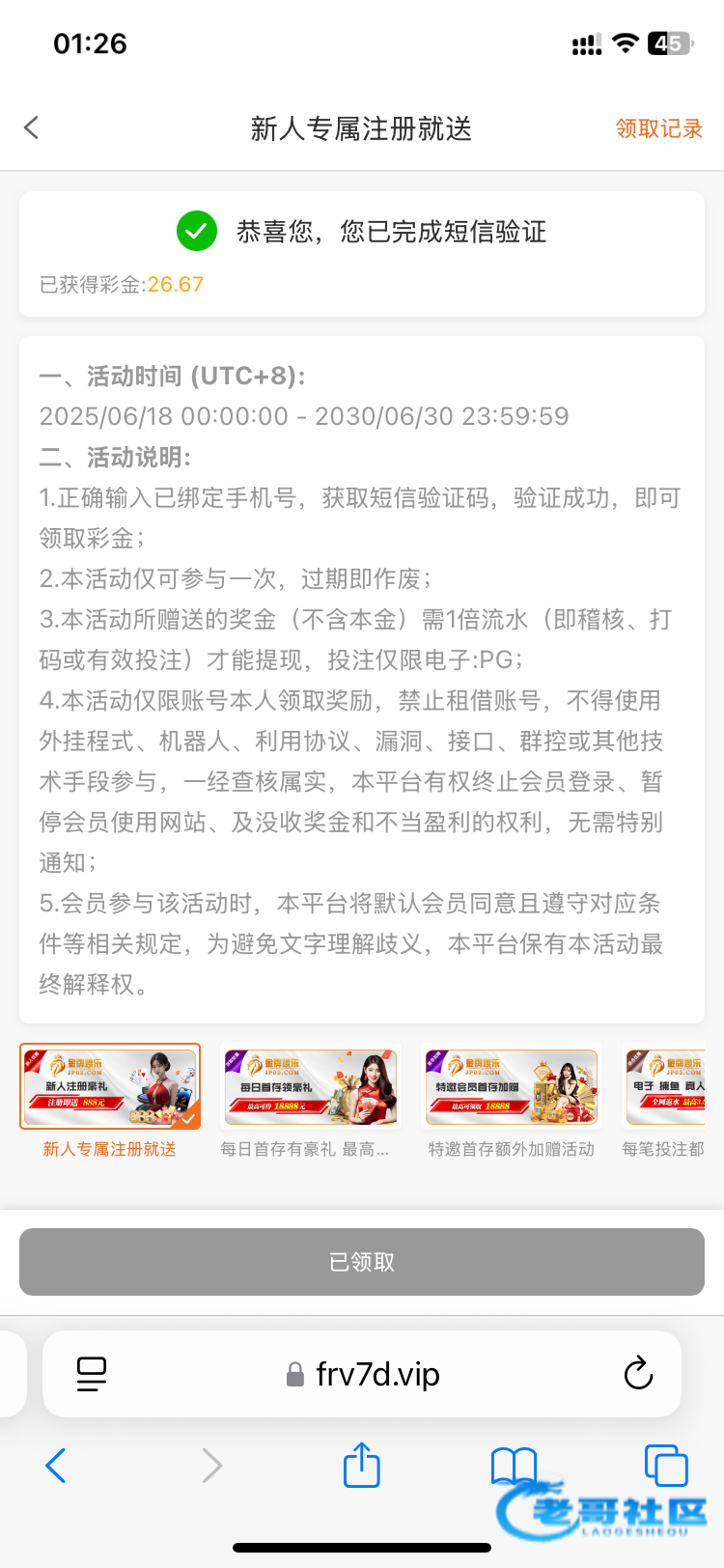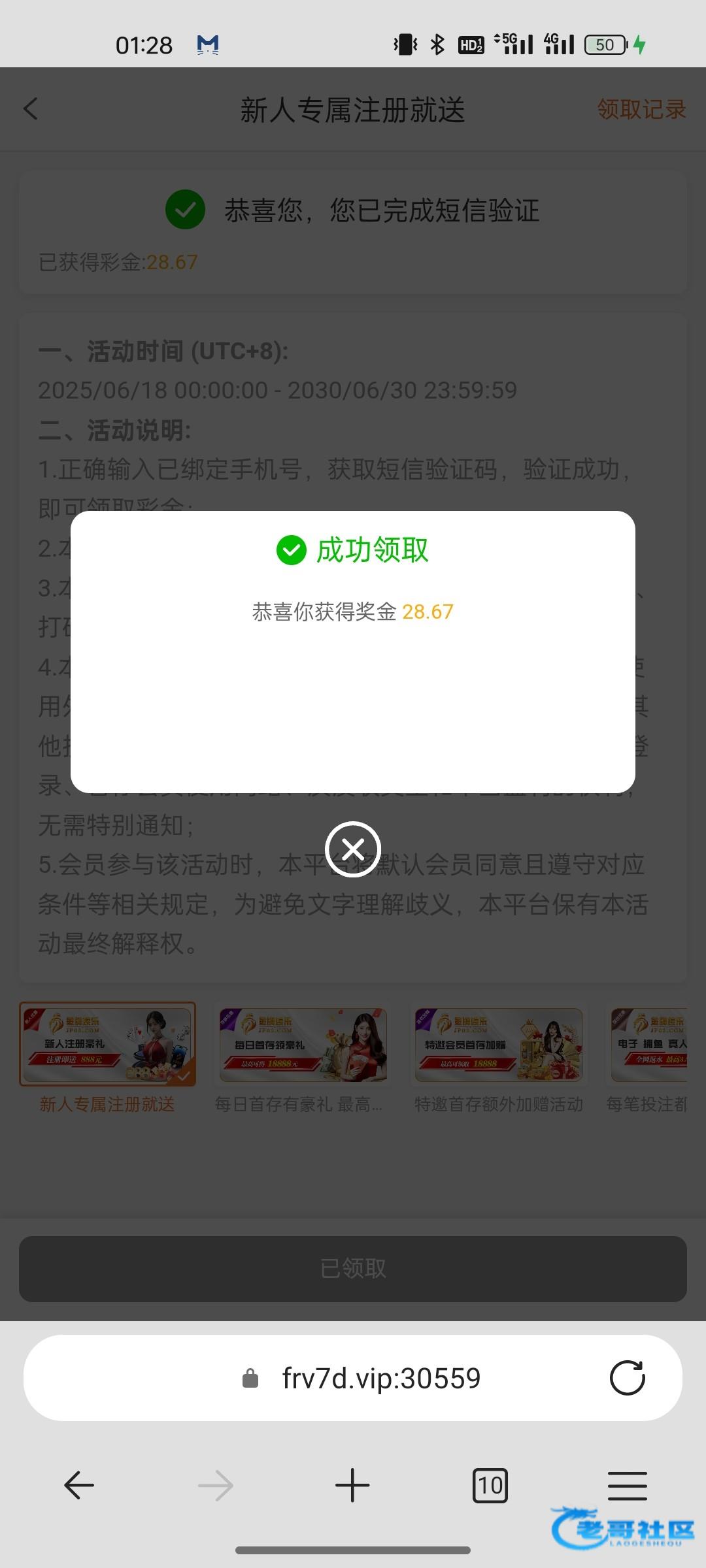 走的短信链接第二个号领取到的 不知道给不给 两下就爆了