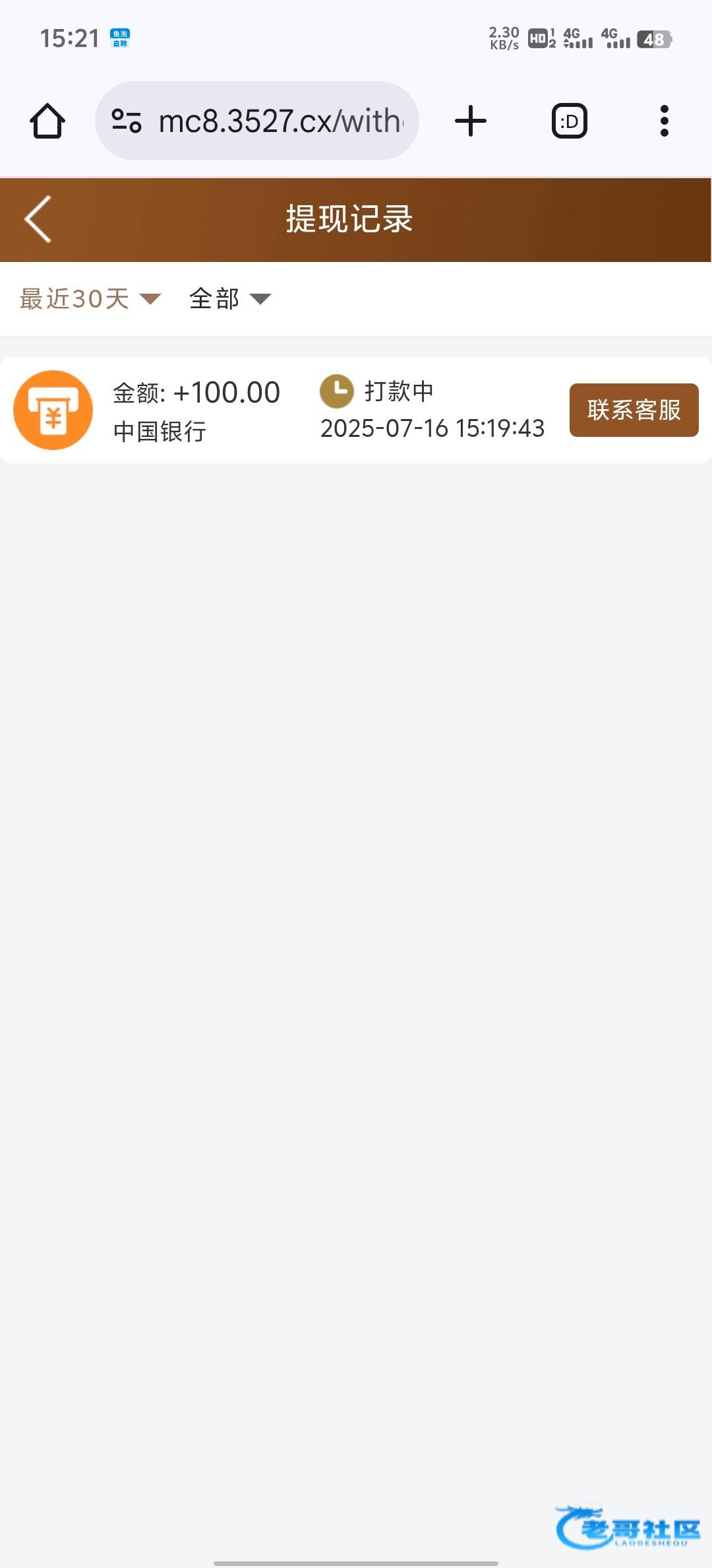 刚领了30打到300多刷了点流水还有200现在提现中不知道能不能到