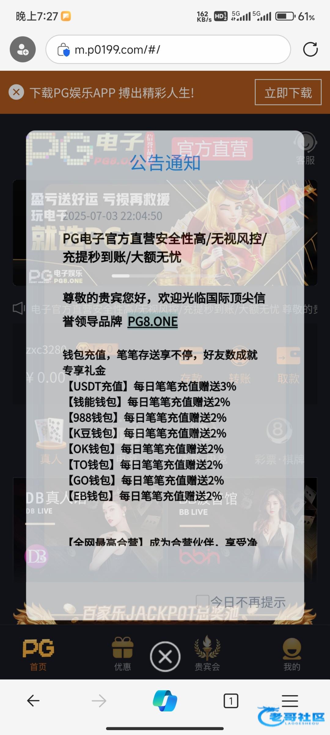 pg8.one黑台,充300+150打上1000,提款一直说提款高峰期,然后多问了几次,直接禁止ip了,还有那个推黑狗