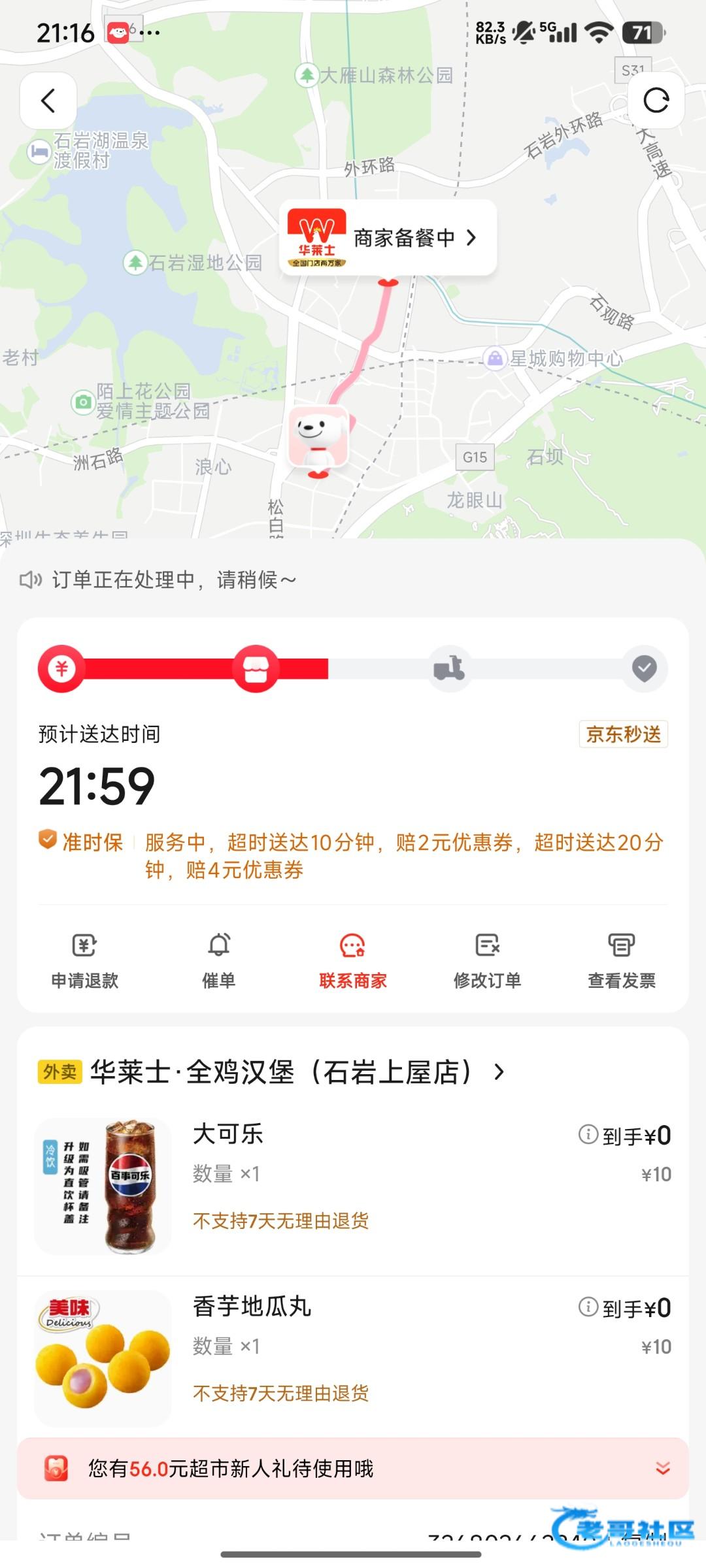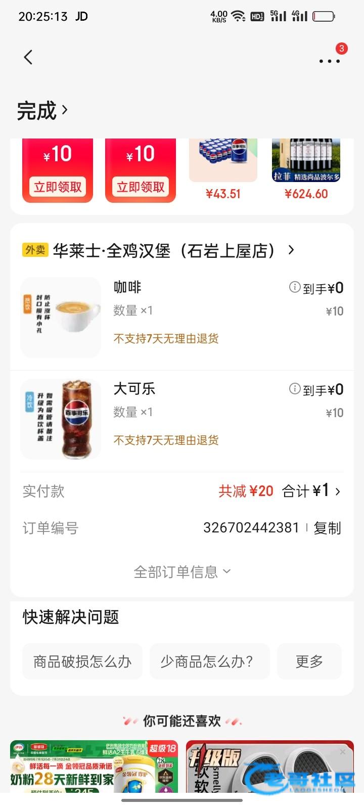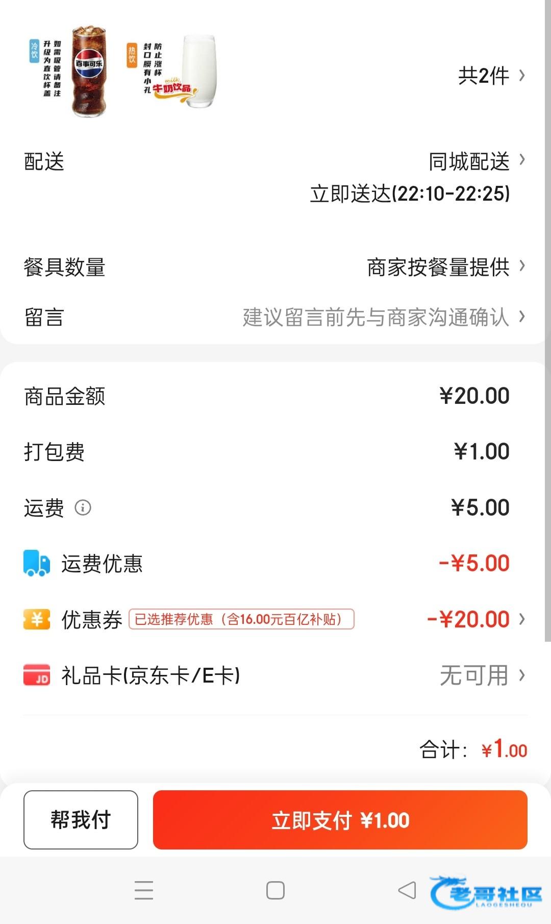 京东秒送里华莱士或者塔斯丁领20-16,微信支付有优惠领5-4叠加券,下两杯咖啡或者可乐,一杯和一份小吃