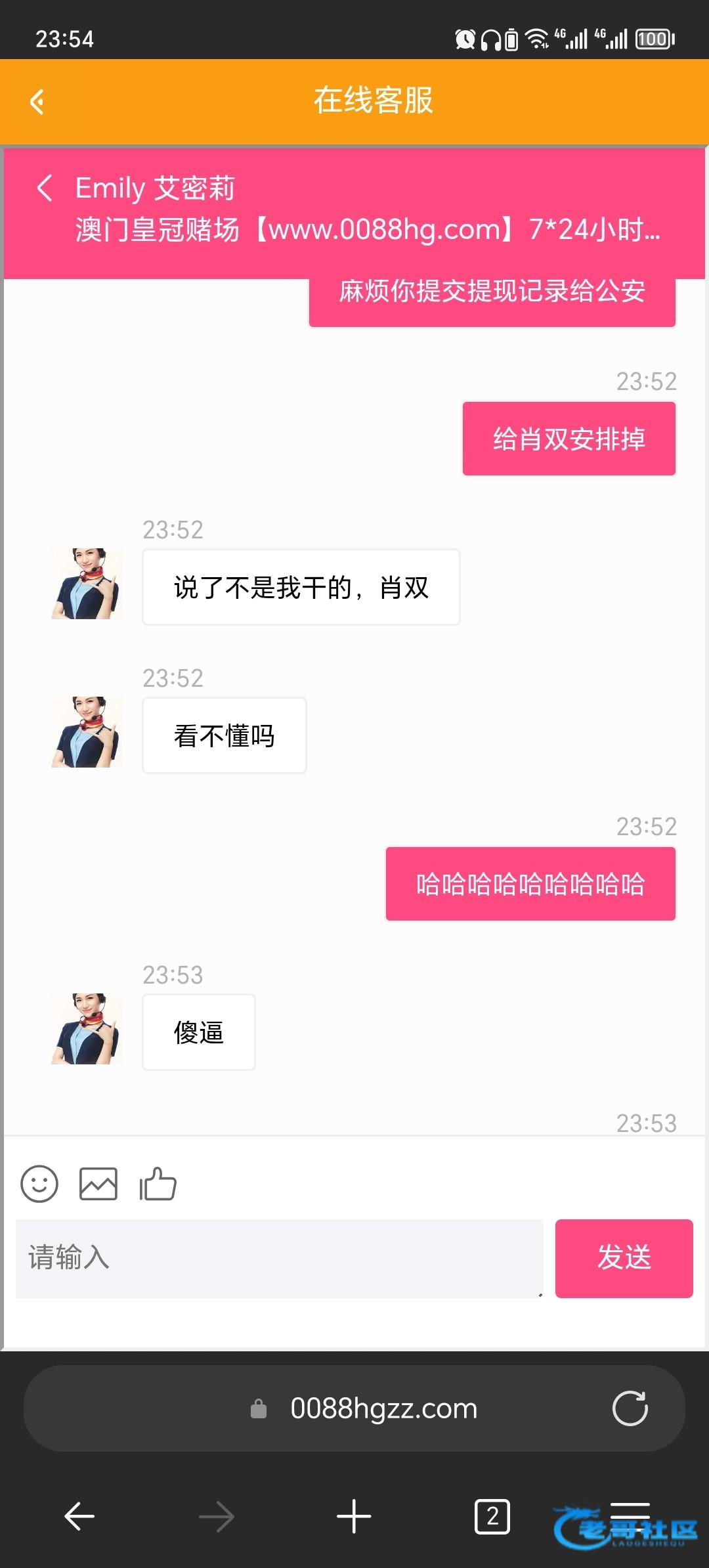看到一个老哥被黑 皇冠0088的台子,我打抱不平去把客服骂了一顿 为那个老哥出口气,结果那个客服说已经给他出款了,以为我是肖双本人,现在说把提现记录,银行卡报给了国内公安,有图有证据。肖双看见 记得去问候她
