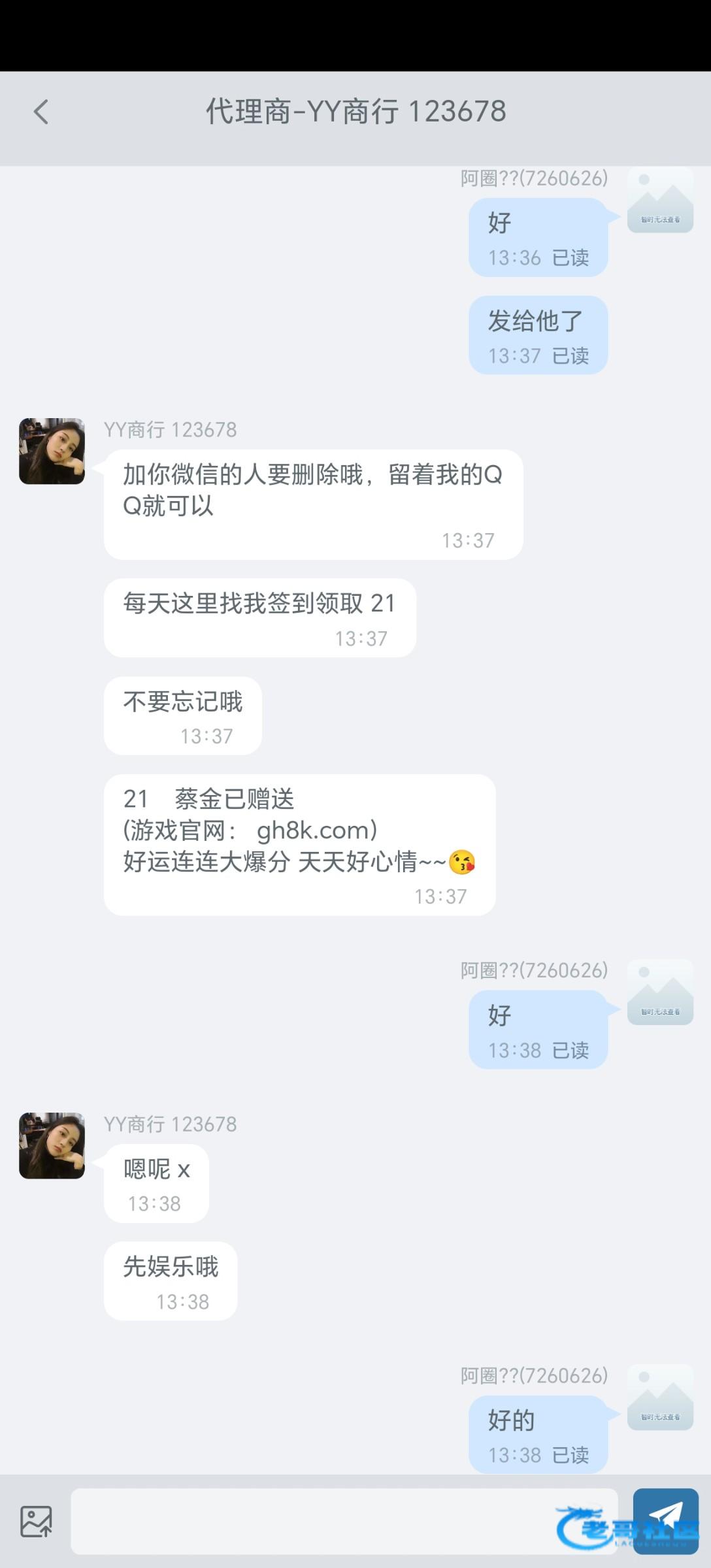 我那个代理就是个废物. 从来没送过,充值过3000输了