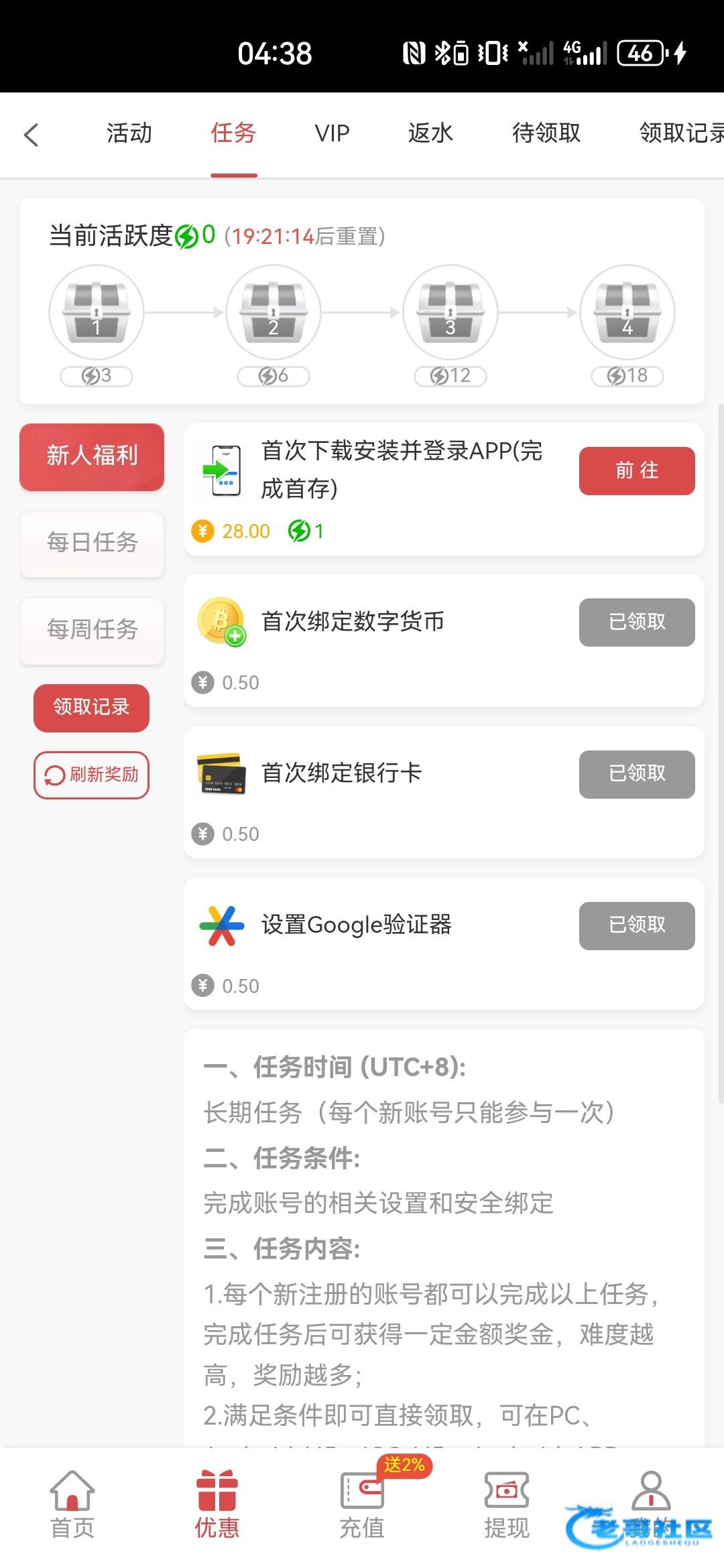 新人注册第一天自助申请送8,我申请等了40分钟才通过。完成任务还有1.5。下载app还有28需要充值最低10自测。