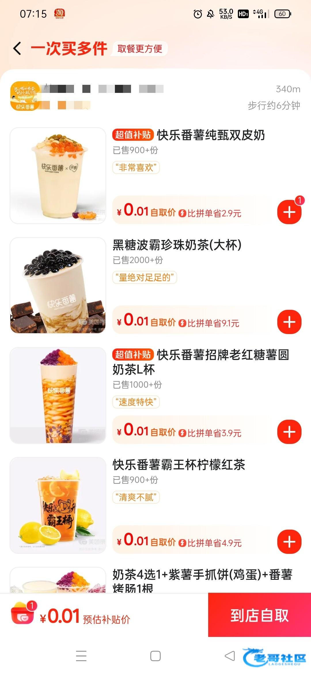 快乐番薯一分钱的奶茶自取无限量